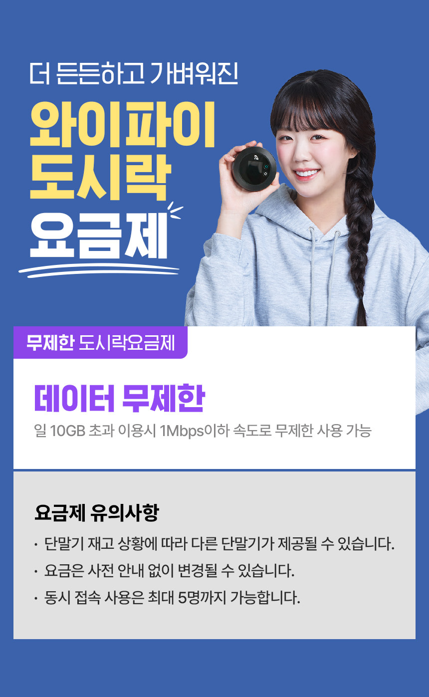 안전하게 관리되는 것은 물론, 최신 기기로 데이터 걱정 없이 여행을 즐겨보세요. 와이파이 도시락을 대여하면 주요 항공사, 여행사, 면세점, 카드사 등 제휴로 다양한 혜택을 함께 받을 수 있고 해외로밍전화도 무료로 이용할 수 있어요.