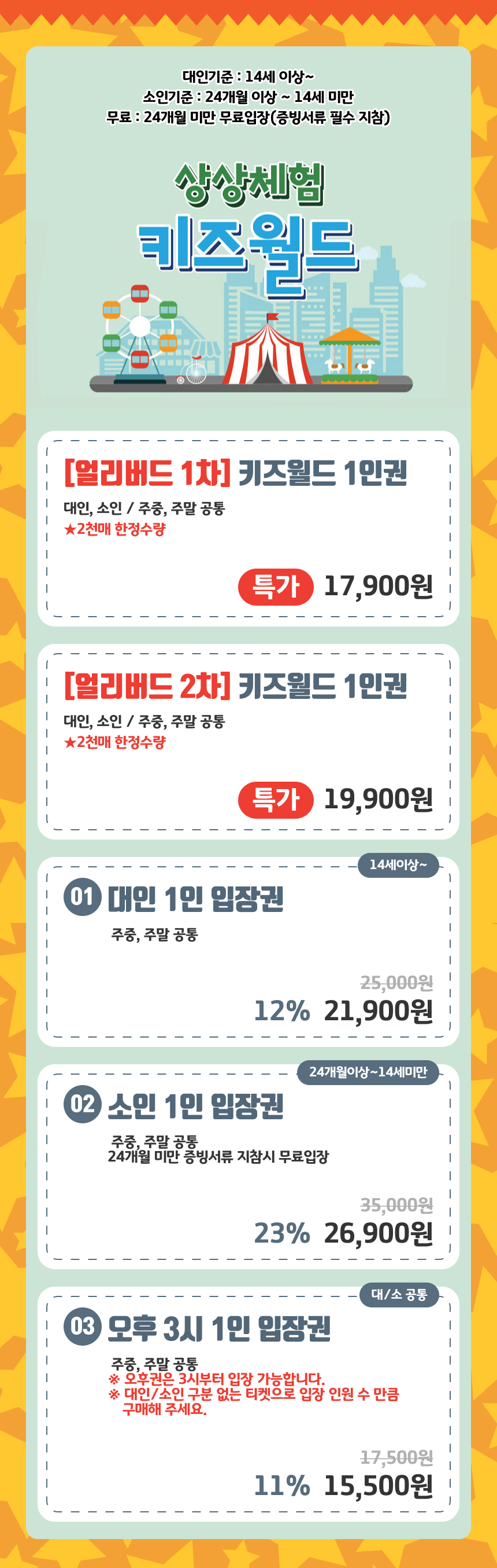 온 가족이 함께 즐길 수 있는 테마파크! 다양한 놀이기구와 대규모의 키즈월드가 송도 컨벤시아에 왔어요! 아이들에게 인기 만점인 놀이기구를 즐겨보세요.