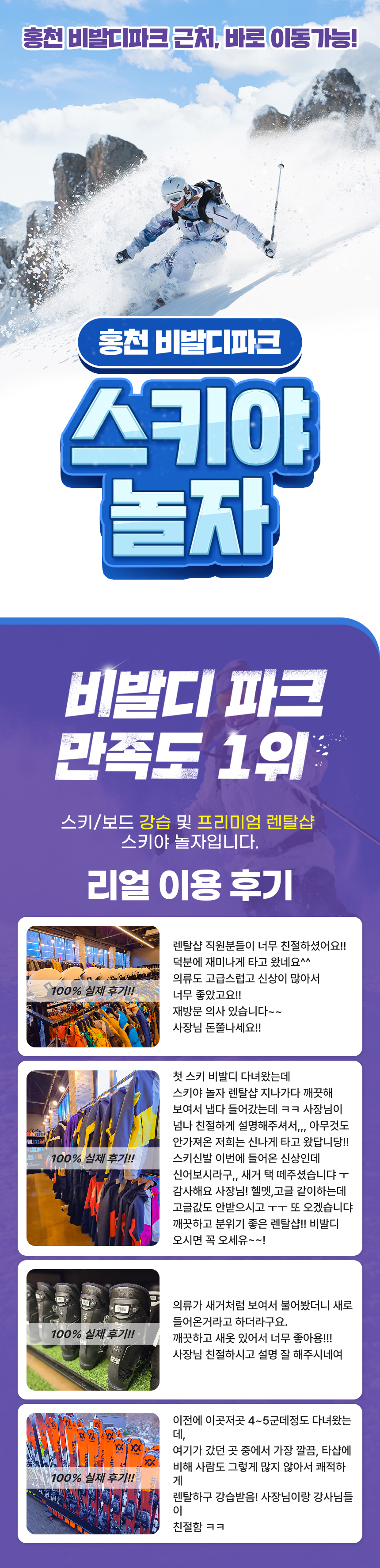 홍천 비발디 파크에서 아주 가까운 렌탈샵, '스키야놀자'를 소개해요.