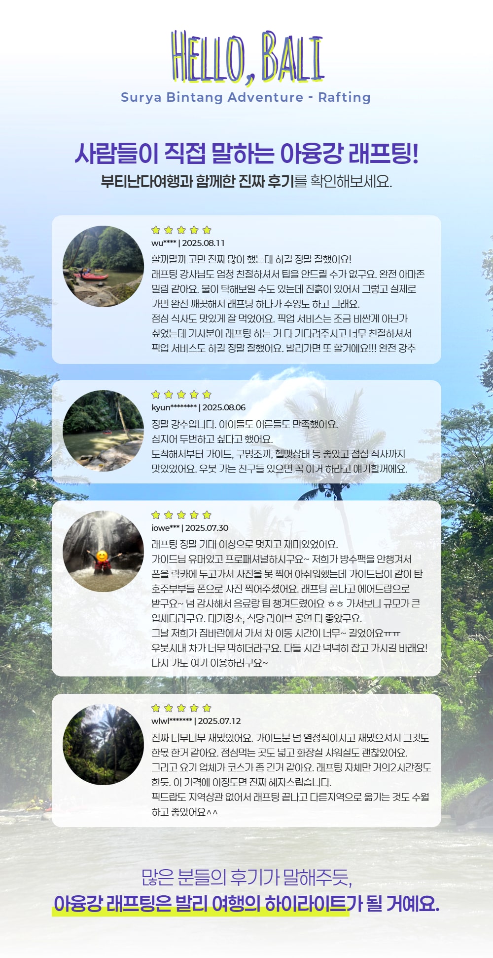 발리 여행객이라면 필수로 해봐야 하는 아융강 래프팅은 전 세계적으로 유명한 래프팅 스팟 중 한 곳이에요.