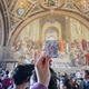 시스티나 성당의 제대 뒤 벽을 채우고 있는 '최후의 심판' 또한 미켈란젤로의 작품으로, 천장화 완성 22년 후 착수하게 되었어요. 가톨릭의 교리를 완벽하게 나타내고 있으며, 390명 이상의 인물이 그려진 200㎡가 넘는 거대한 벽화랍니다.