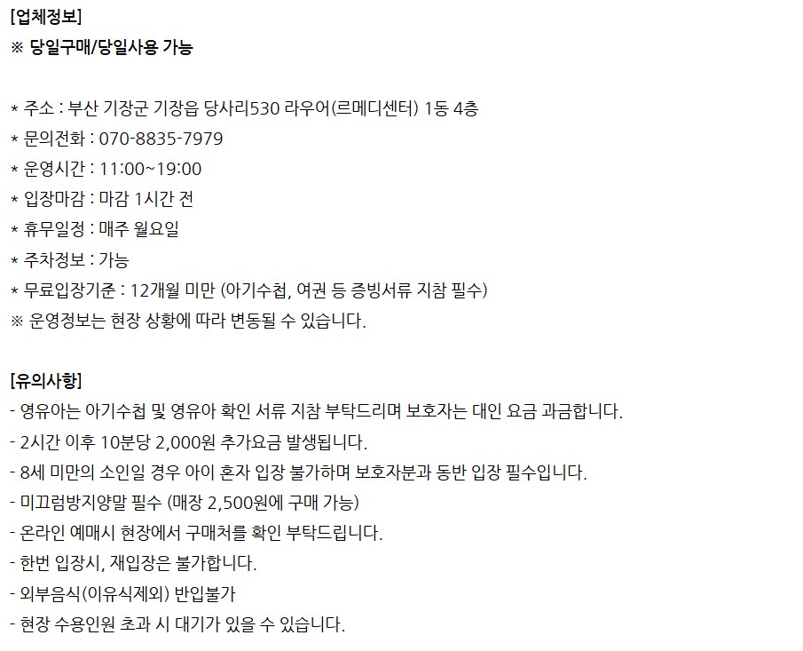 입장마감 : 마감 1시간 전
