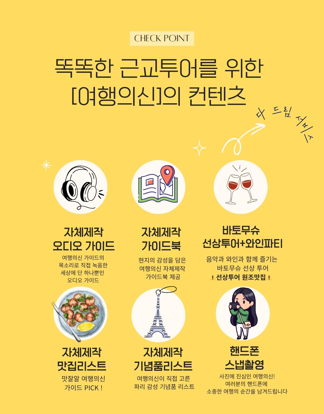 여행의 신 대표 가이드이자 프랑스 공인 가이드의 '자체 제작 궁전 오디오 가이드’와 ‘베르사유 정복 가이드북’이 제공됩니다.