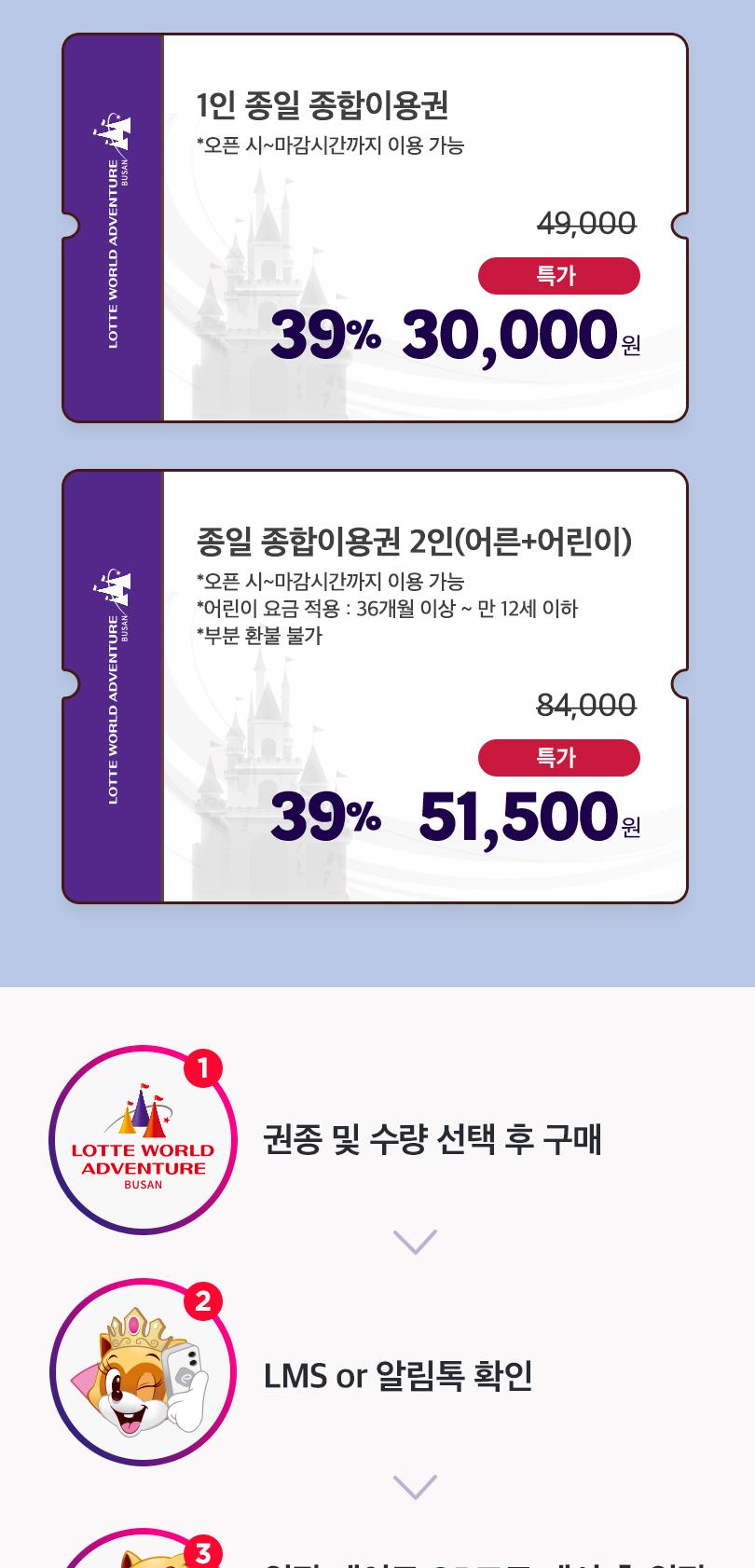 한국어 제공🎢 부산 롯데월드 와그 단독 특가! 지금 바로 예매하고 짜릿한 어드벤처를 가장 알뜰하게 즐겨보세요! 🌊✨ 판매기간 : 2025.11.05 ~ 2025.11.09 유효기간 :구매일 ~ 2025.12.03