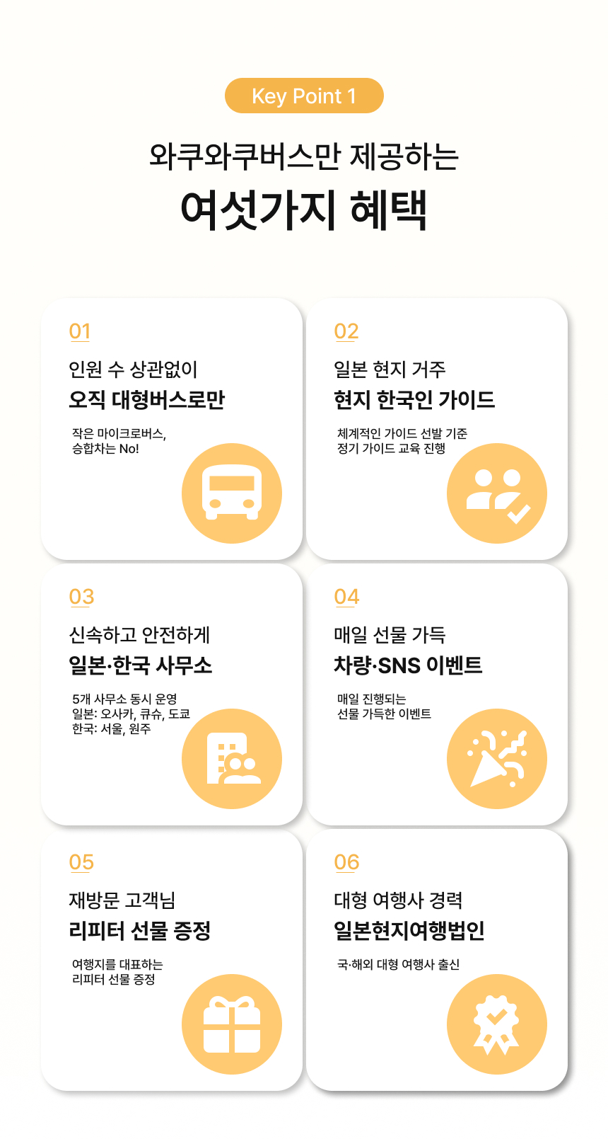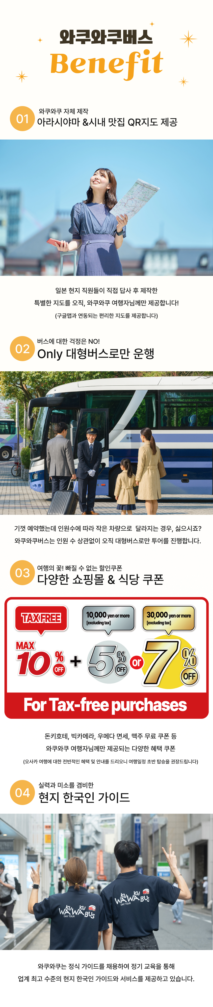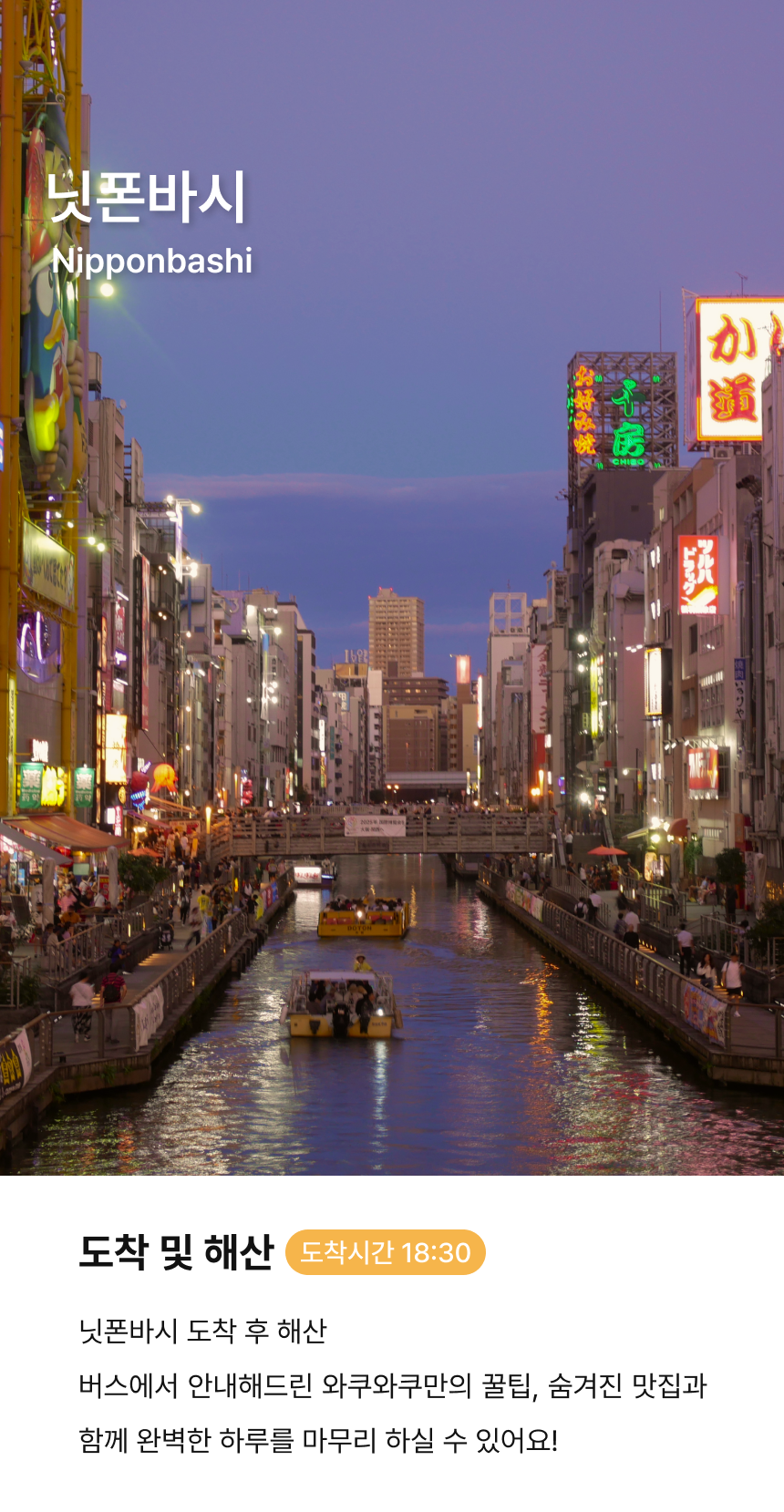 🚌신나게 떠나는 와쿠와쿠 버스 투어 in 오사카🚌 버스투어를 타고 즐겁고 편안하게 떠나는 두근두근 오사카여행 ❤와쿠와쿠버스에서만 누릴 수 있는 특별한 혜택❤ ✨인원 수에 따른 버스변경 NO! 오로지 대형버스로만 운행✨ ✨여행 중 지루할 틈 없는 와쿠와쿠 365 퀴즈 이벤트 진행✨ ✨재방문 여행자님께 드리는 소소하지만 정성 가득한 지역 특산 선물✨ ✨특별 제작한 QR 여행지도 & 돈키호테 할인 쿠폰 제공✨ 설렘 가득한 오사카 여행을 와쿠와쿠버스와 함께 떠나보세요!