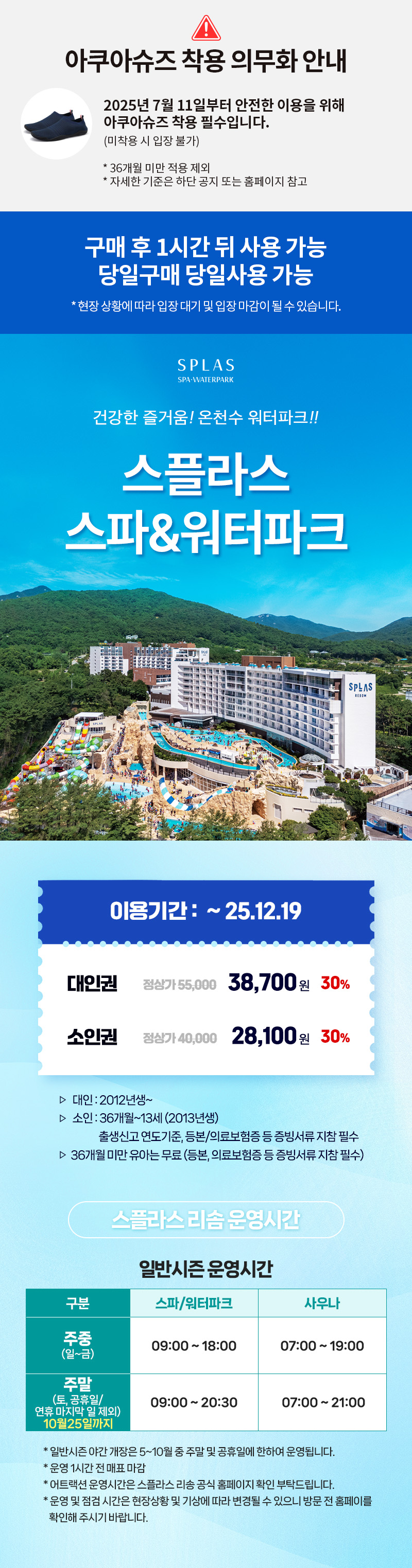스파/워터파크 : 오전 09:00 ~ 오후 20:30