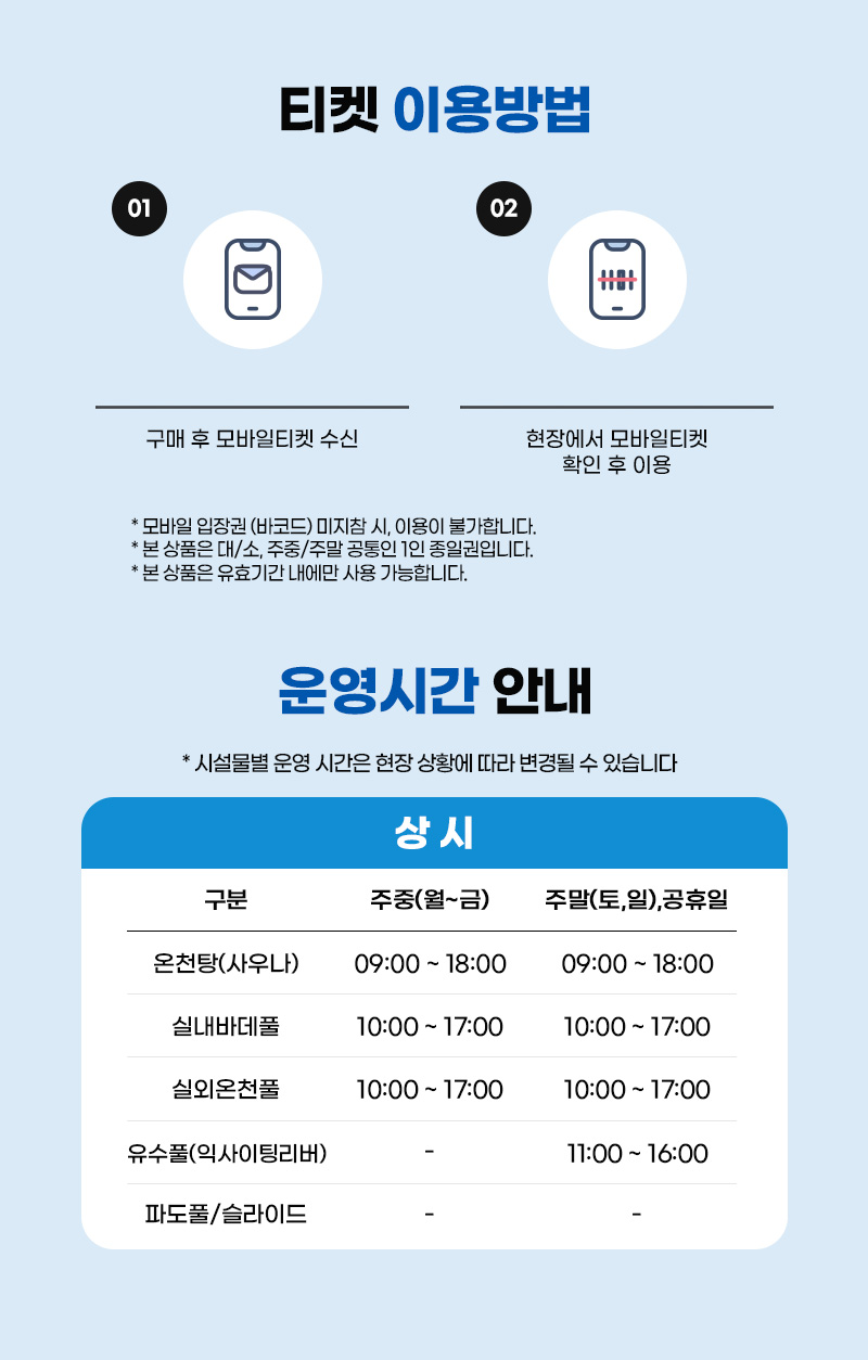 이용 전 반드시 공식 홈페이지에서 운영일자,운영시간,유의사항 확인 바랍니다.