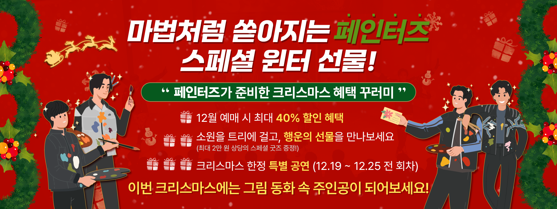보고 나면 사랑할 수밖에 없는 6명의 페인터즈! 미디어 아트의 창의적인 융합을 통해 미술 작품이 탄생하는 과정을 드라마틱하게 나타낸 공연, 페인터즈를 만나보세요. 무려 19개국 133개 도시를 공연하며 600만 관객에게 사랑받은 공연을 서울에서 만나보실 수 있어요.