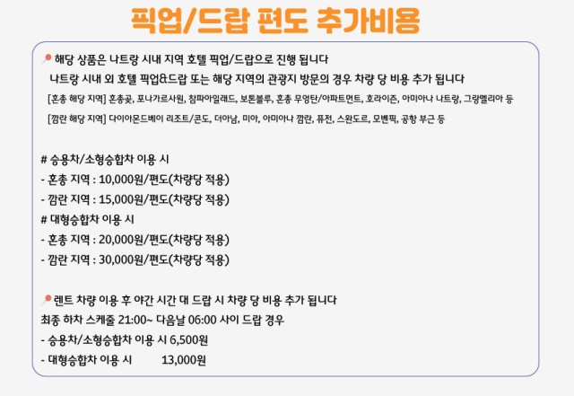 * 나트랑 시내 외 타지역의 경우 추가비용이 발생합니다.