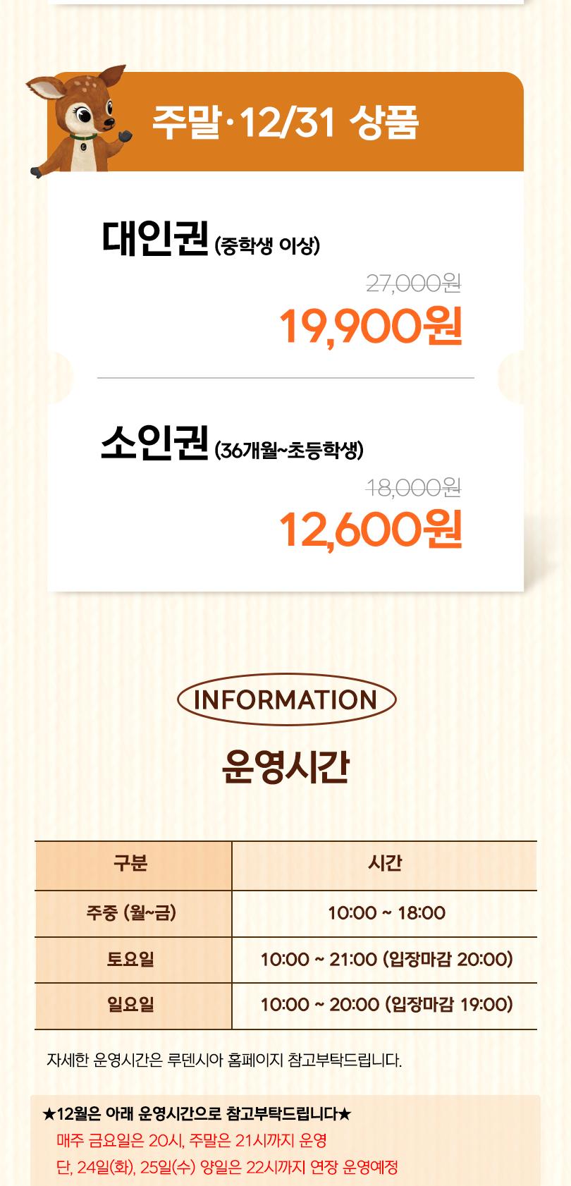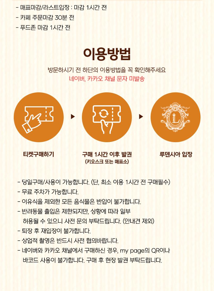 ※ 상황에 따라 운영시간이 변동될 수 있습니다. 자세한 운영시간은 루덴시아 홈페이지 참고부탁드립니다.