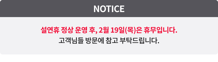 휴무일 : 매주 월요일 (월요일이 공휴일인 경우 정상운영 후 다음 날 휴장)