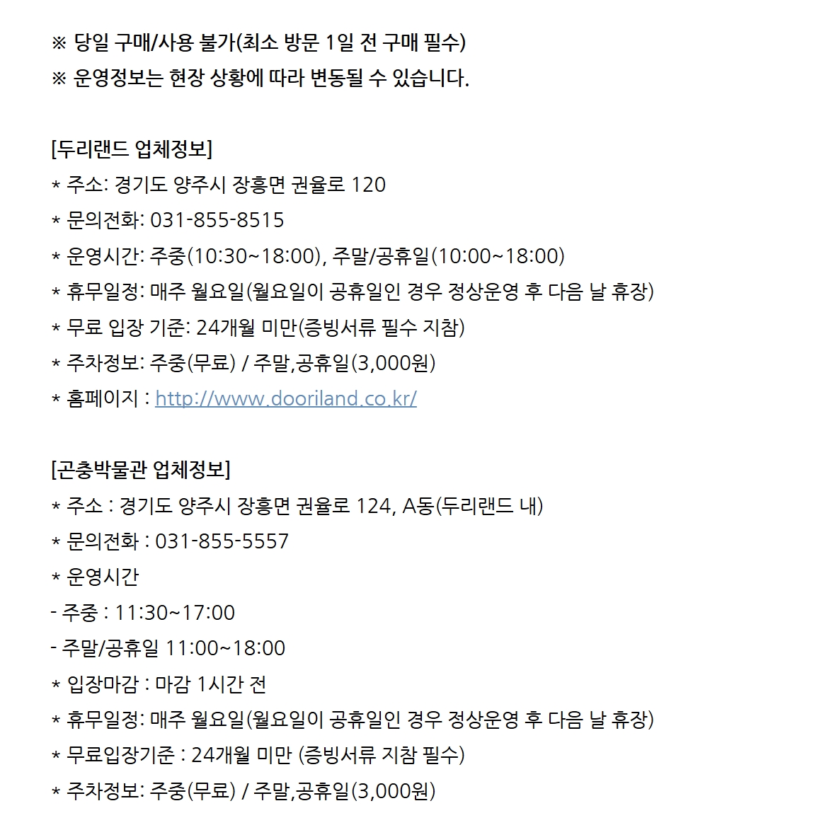 양주 두리랜드 & 곤충박물관 입장권 패키지