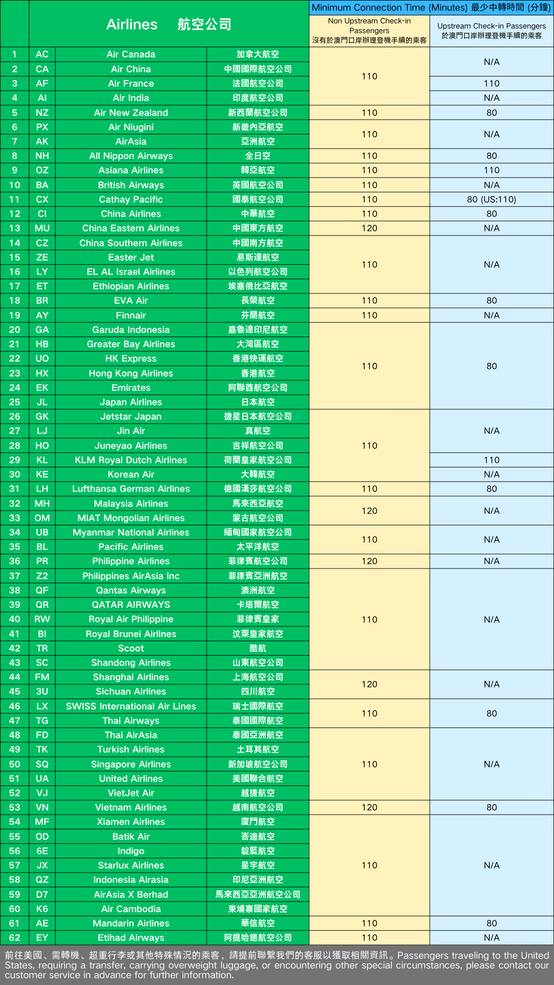 ※ 마카오 홍콩 공항의 체크인 카운터 마감 시간은 버스 출발 45분 전입니다. 버스 체크인 절차를 밟을 수 있는 충분한 시간이 필요합니다.