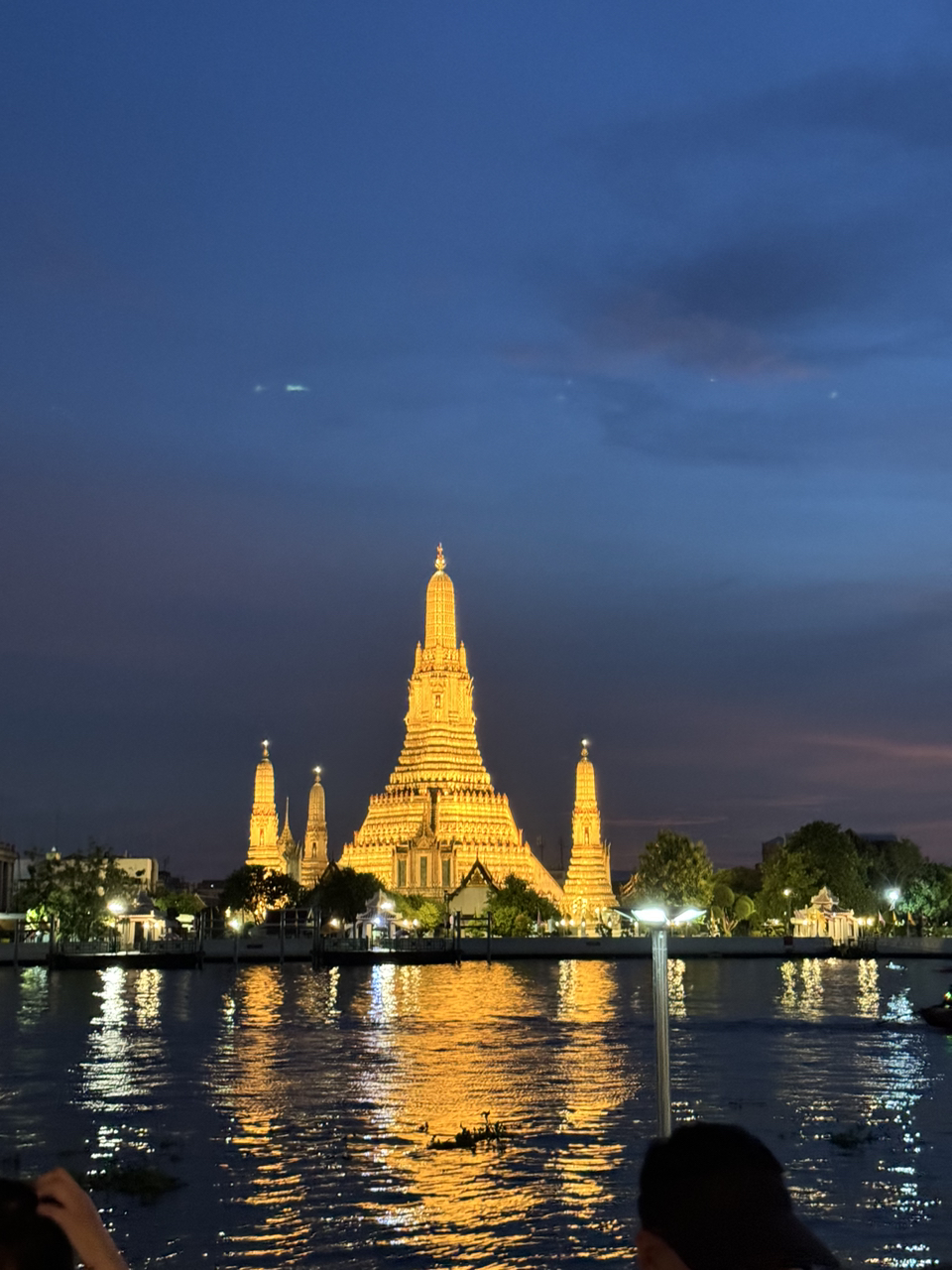 섬세함이 빛나는 사원. 낮에도 아름답지만, 밤이면 황금빛 조명이 더해져 화려함이 절정에 이르러요. 짜오프라야 강과 사원 전체를 한눈에 담고 싶다면 강 건너편으로 가보세요. 사원과 강이 잘 보이는 몇몇 스팟에서는 멋진 기념사진을 남길 수 있습니다.