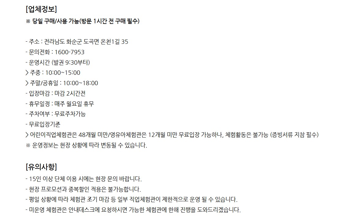 베스트지난 겨울방학 와그를 통해 제일 저렴하게 티케팅할 수 있었어요. 아이들이 다양한 체험을 하고 왔고 연말이라 체험스탬프 이벤트를 하고 있어 선물도 받고 즐거운 경험이었어요. 저렴한 가격으로 구매할 수 있어서 와그 정말 최고에요!