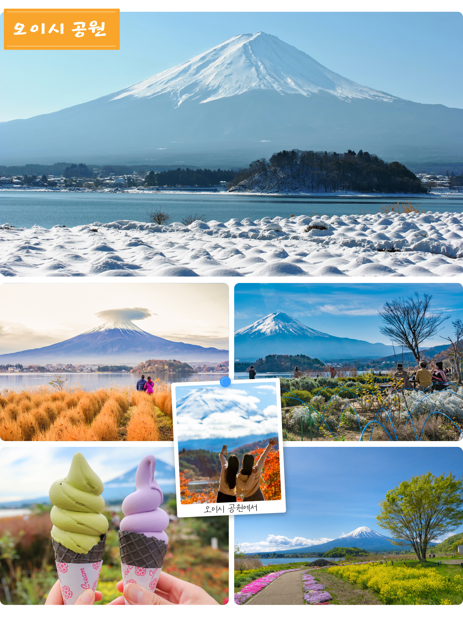 도쿄의 번잡함에서 벗어나 자연의 화려함과 문화적 깊이를 엮어내는 후지산 투어는 어떠신가요? 요즘 SNS에서 급부상 중인 후지산 인증샷 스팟인 오부치 사사바, 혼코거리부터 후지산 경치를 제대로 감상할 수 있는 가와구치호, 오이시 공원, 센겐공원까지 모두 커버 가능한 투어예요.