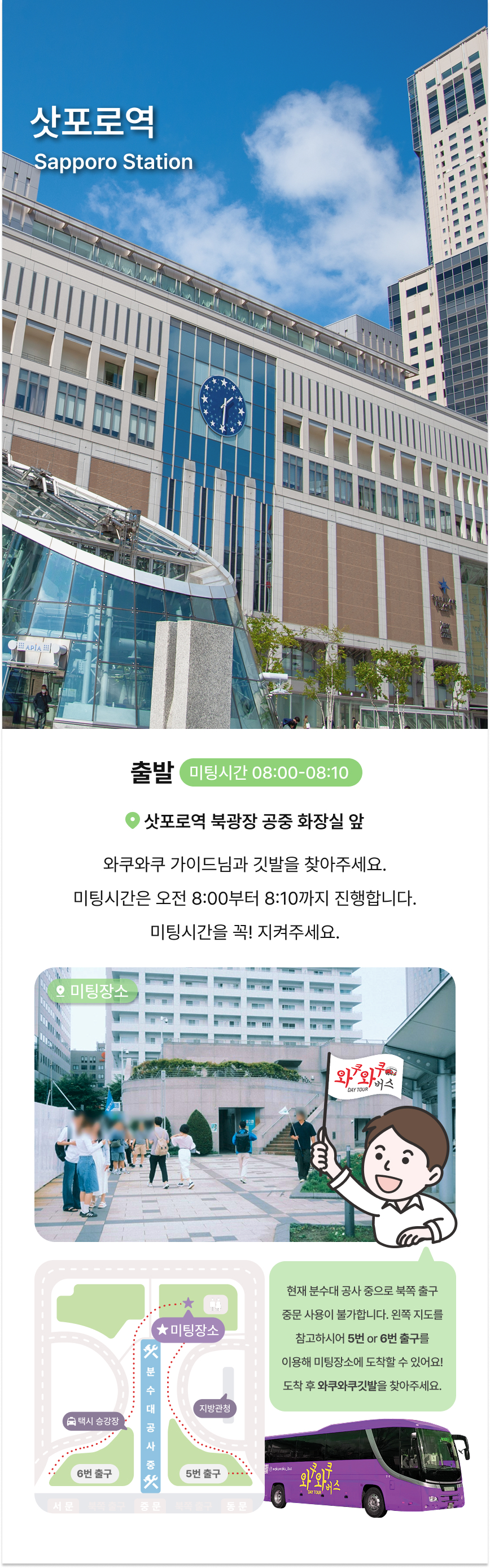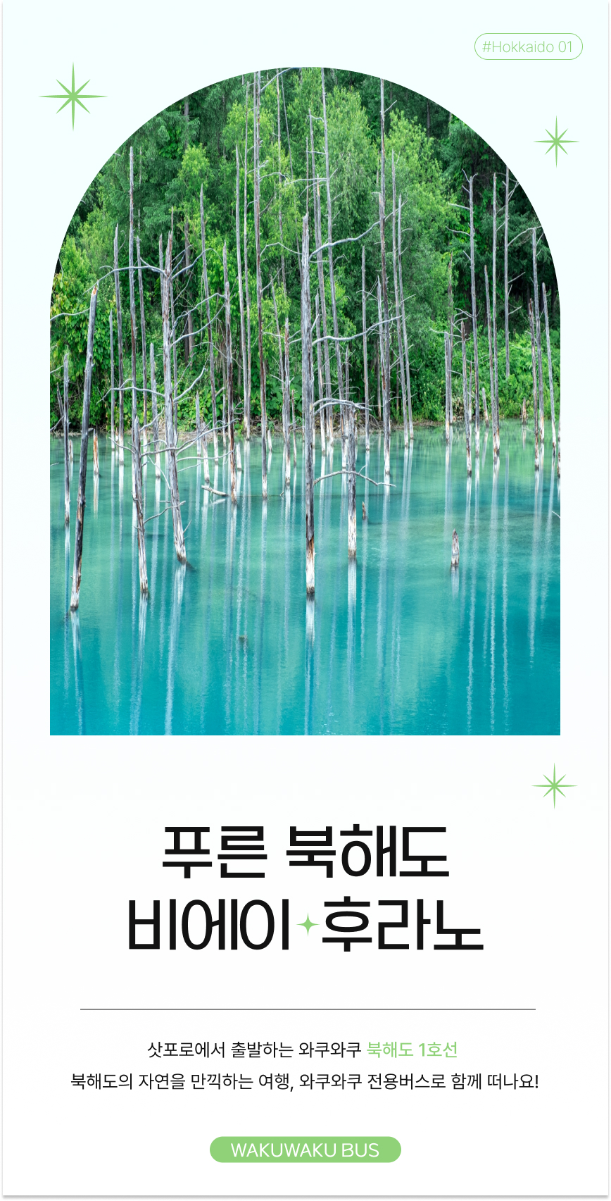 와쿠와쿠 전용버스로 떠나는 특별한 하루! 세련된 보라색 대형 버스와 경험 많은 한국인 가이드가 함께하는 홋카이도 일일 버스 투어를 소개해요. 끝없이 펼쳐진 푸른 자연과 감각적인 갤러리를 둘러보며, 홋카이도의 매력을 깊이 느껴보세요. 어디에서도 볼 수 없는 다채로운 풍경이 여행의 감동을 더해 줄 거예요.