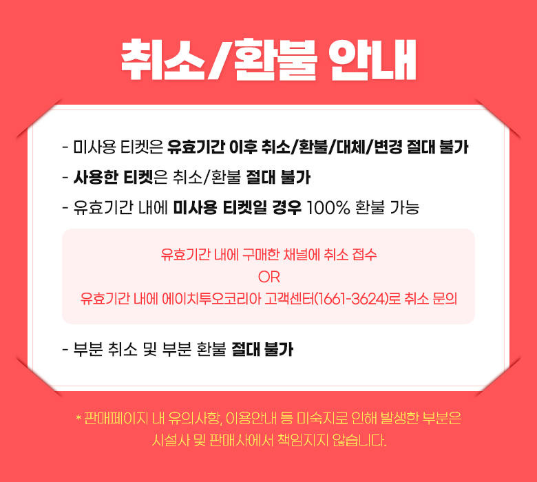 해당 티켓은 종일권으로 하루종일 여유롭게 시간을 보내고 또 4시간권 오전/오후 티켓으로 하루의 시간을 유용하게도 보낼 수 있어요.