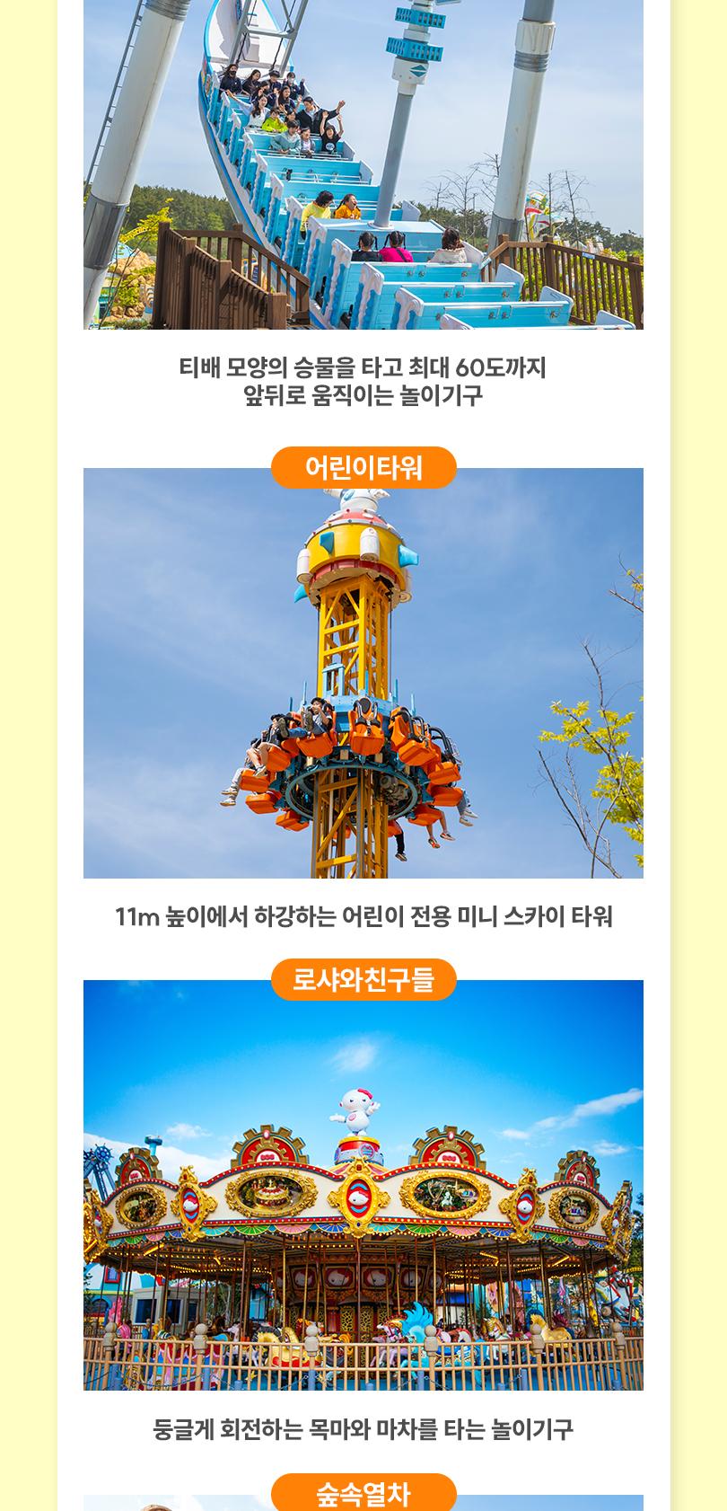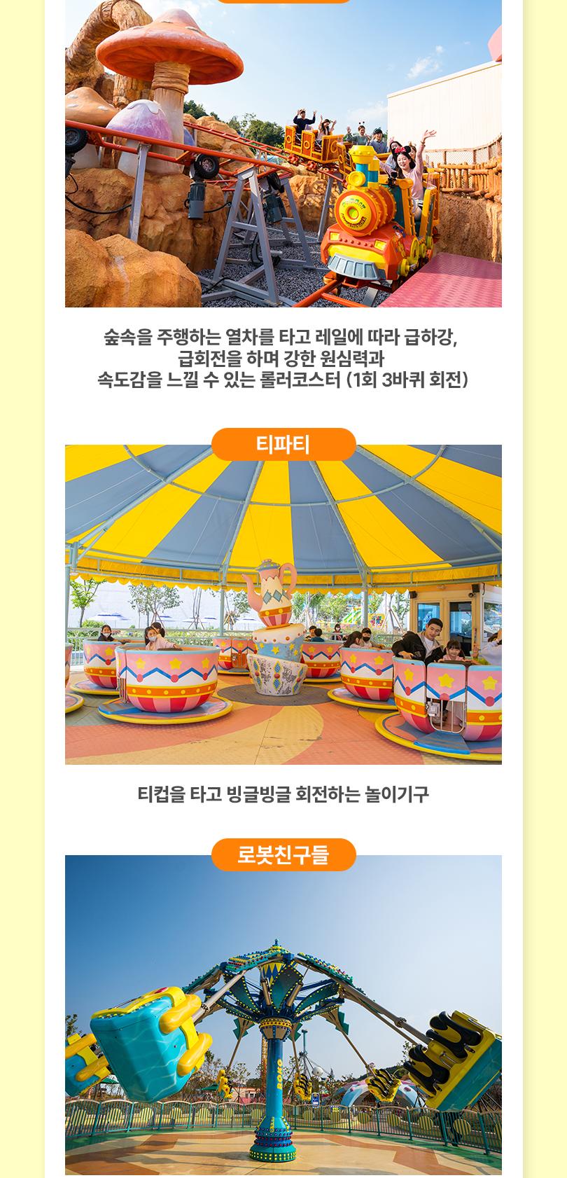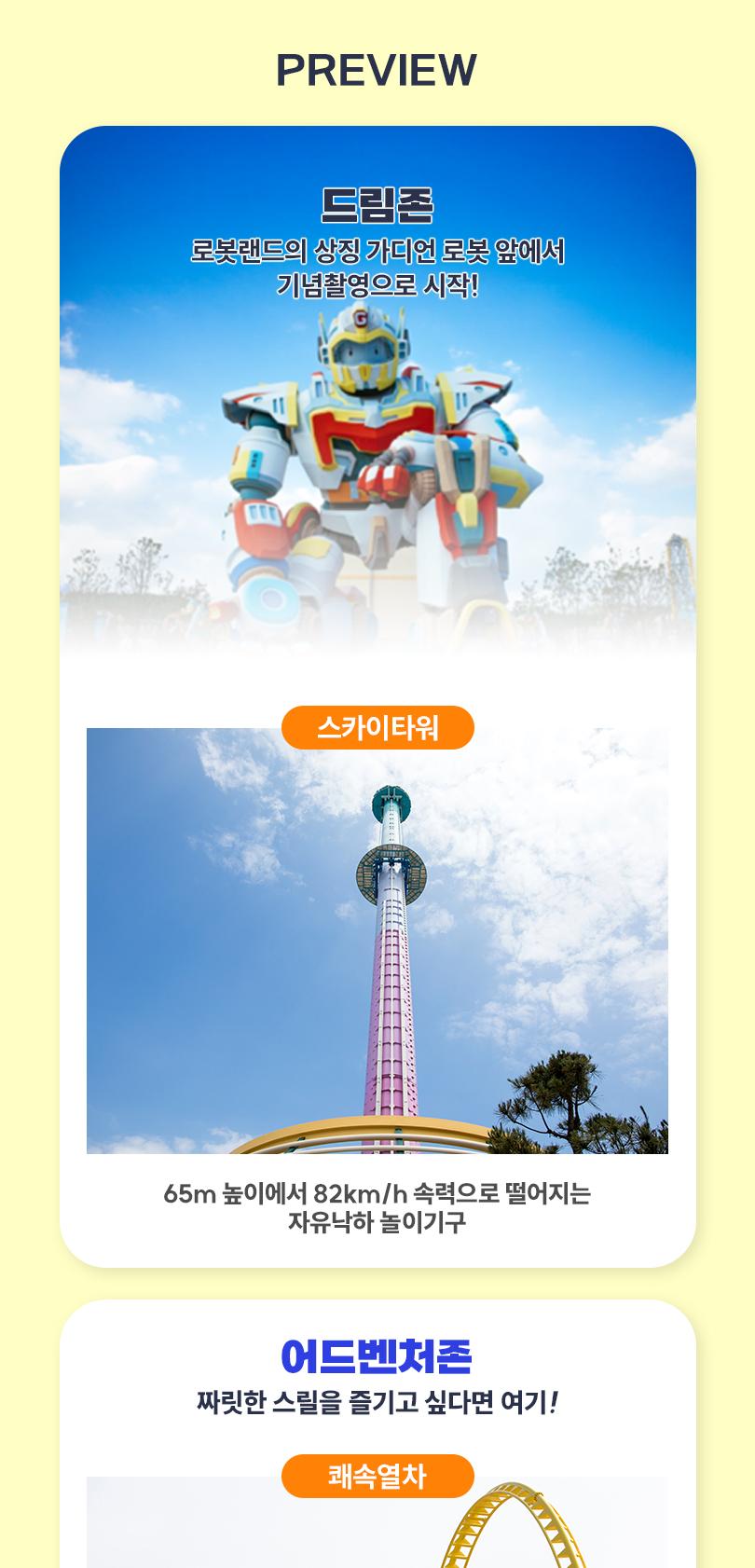 로봇랜드는 세계 최초의 로봇 테마파크로 회전목마, 롤러코스터 등의 짜릿한 22개 놀이기기구는 물론 기존 테마파크와는 차별화된 미래에서 온듯한 다양한 로봇이 있는 11개의 로봇 체험관람시설이 있어 남녀노소 모두 알찬 하루를 보낼 수 있어요. 주말에는 다양한 행사와 불꽃놀이까지 준비되어 있어 가족 나들이로 최적의 공간이에요.