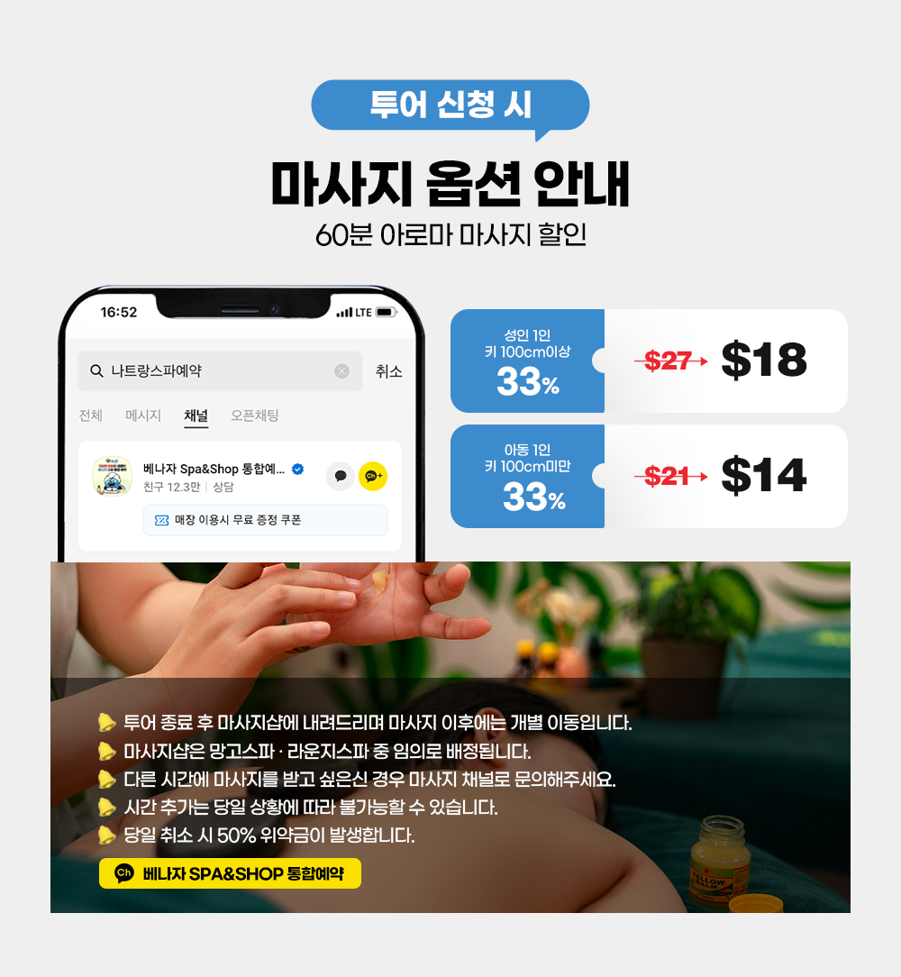 나트랑 시내의 주요 명소를 모두 돌아보고 식사와 함께 공항 샌딩까지 가능한 투어이기에, 나트랑 여행 마지막날 호텔 체크아웃 이후 밤 비행기를 이용하시는 여행자분들에게 꼭 추천 드리는 투어예요.