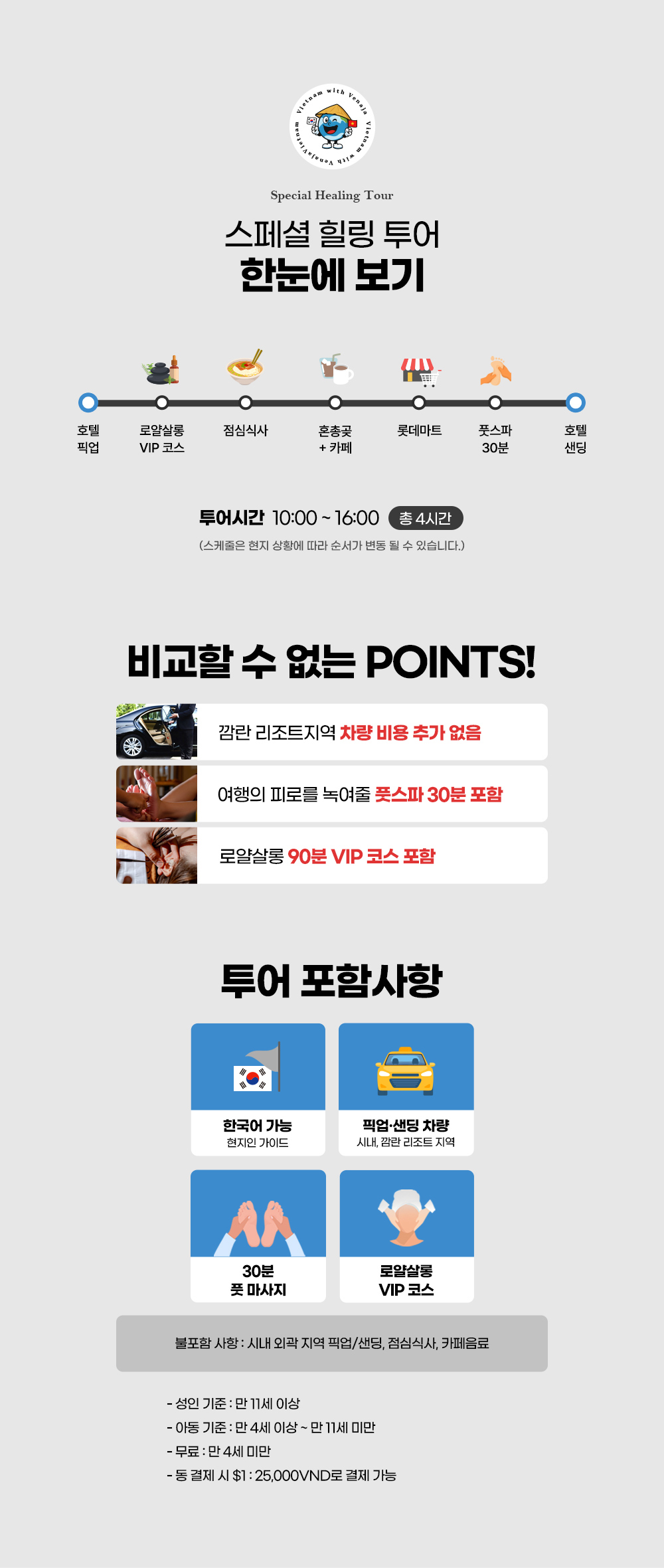 * 정확한 미팅 시간은 투어 하루 전 베트남 현지 시각 오후 7시 전 연락드려요.