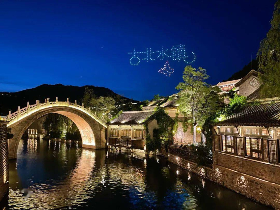 고북수진은 민속 마을 테마파크이기에, 실제 주민들이 거주하는 수향마을과 달리 고택 곳곳에 조명이 설치되어 있고, 저녁에는 분수쇼가 펼쳐져요. 사마대장성 또한 고북수진의 전경이 내려다보이고, 험준한 산세에 굳게 자리 잡아 기이함을 연출하며 야경 맛집으로 불리고 있죠!