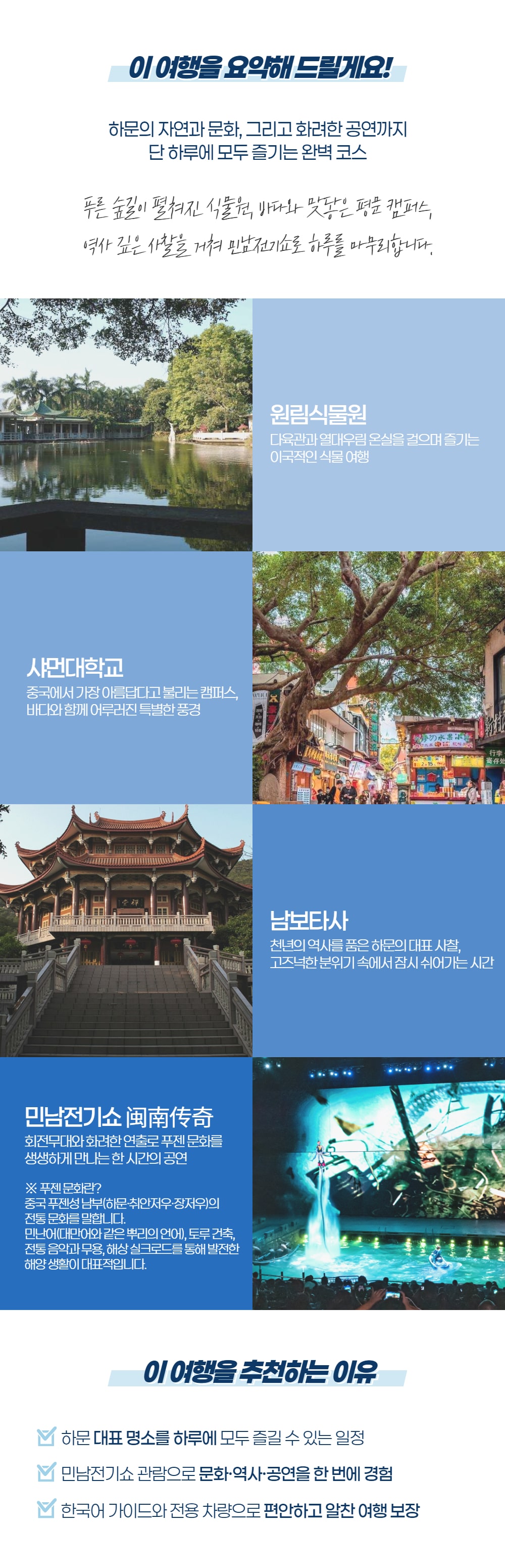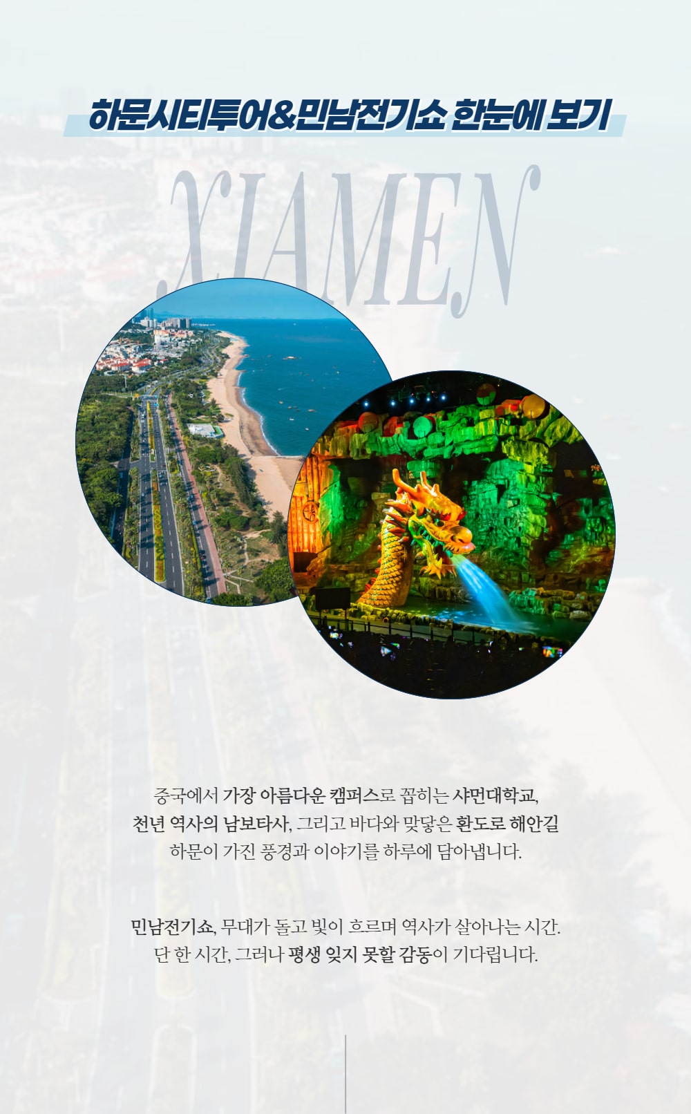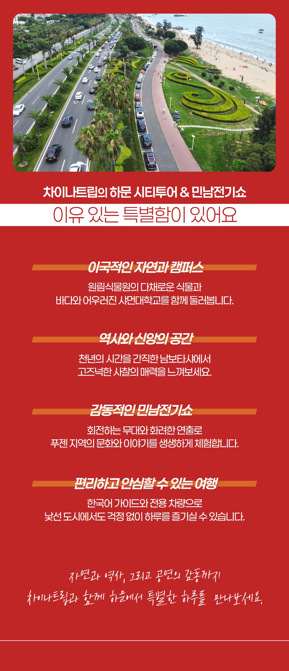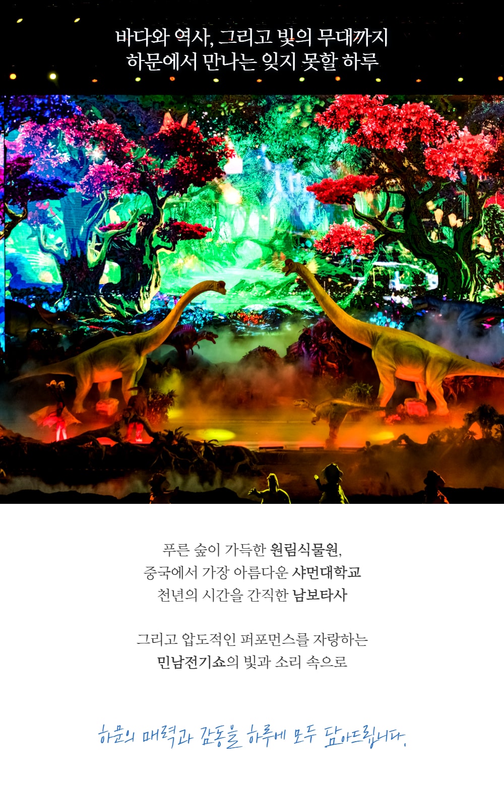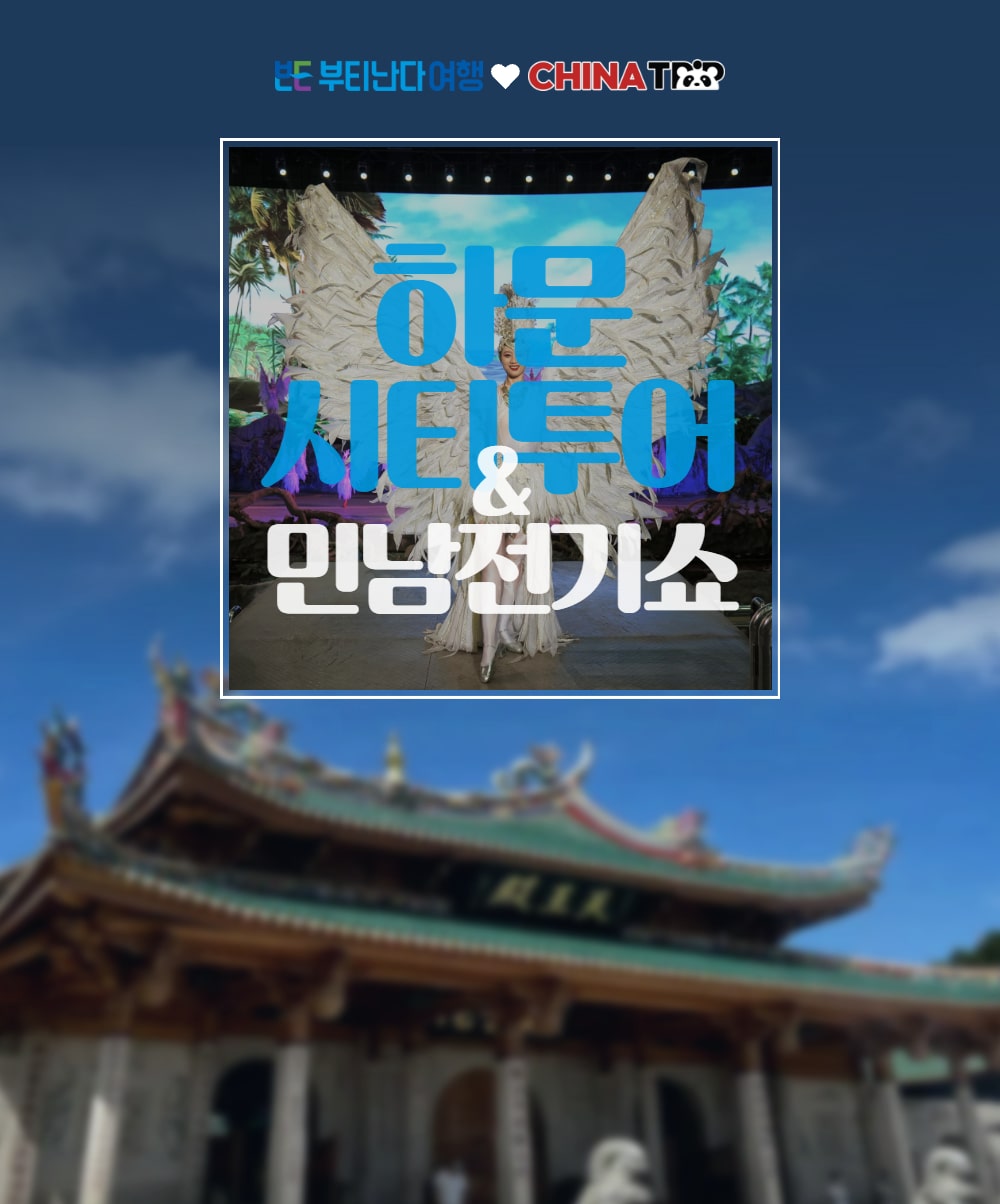 또한, 샤먼의 대표적인 쇼 "민남전기쇼"도 즐기면서 많은 여행객들이 샤먼을 사랑하는 이유를 찾으러 떠나보세요!