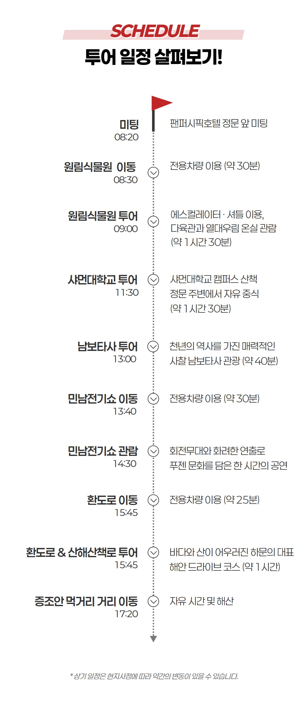 * 지정된 미팅 시간의 10분 전 미리 도착해 주세요.