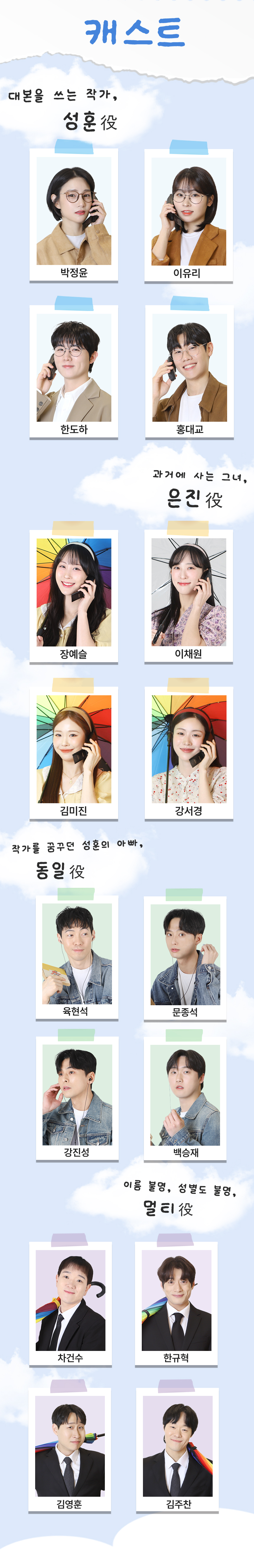 과거와 현재에 사는 두 주인공이 전화를 통해 소통하면서 시작되는 이 연극은, 대학로에서 남녀노소 할 것 없이 모든 관람객에게 사랑받고 있어요. 대학로 서연 아트홀에서 진행되는 이 연극은, 특유의 흔하지 않은 소재와, 관객들을 보는 내내 빵빵 터져 웃게 만드는 매력으로 무장하고 있어요. 과거와 현재를 오가며 타임슬립을 하는 주인공들을 보는 재미도 엄청나요. 보는 내내 마음이 편안해지는 힐링코미디 연극, 비누향기를 와그에서 만나보세요.