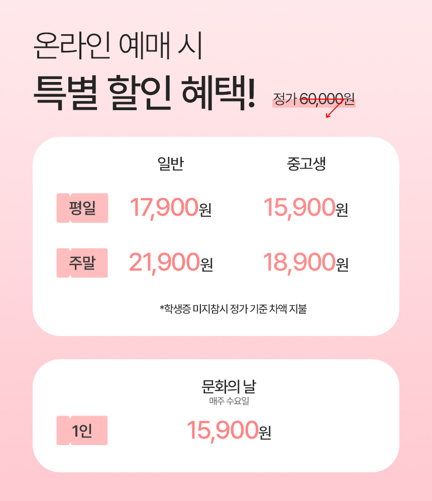 월~금요일 : 오후 15:00 / 오후 17:20 / 오후 19:30