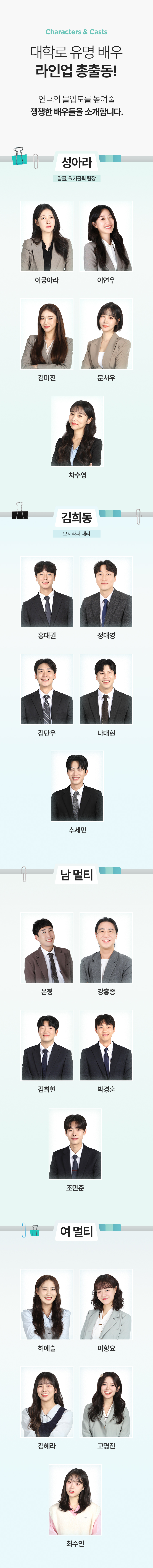 본격 현실 오피스 로맨스 코미디, 대학로에서 핫한 연극 '사내연애 보고서'를 소개해요. 사내연애 보고서는 관객 리뷰가 증명하는 공감 백배 로코 연극으로 연극의 이름처럼 직장인 커플들에게 특히 더 인기가 많은 연극이에요. 해당 연극의 실물티켓은 평범한 티켓이 아닌 사원증 스타일의 독특한 티켓으로 소장하기에도 좋아요. 5일간의 황금연휴를 앞두고 회사 옥상에 갇힌 팀장과 대리, 그 둘의 사이는 어떻게 될지 그들의 속마음을 흥미진진하게 관람해 보세요.