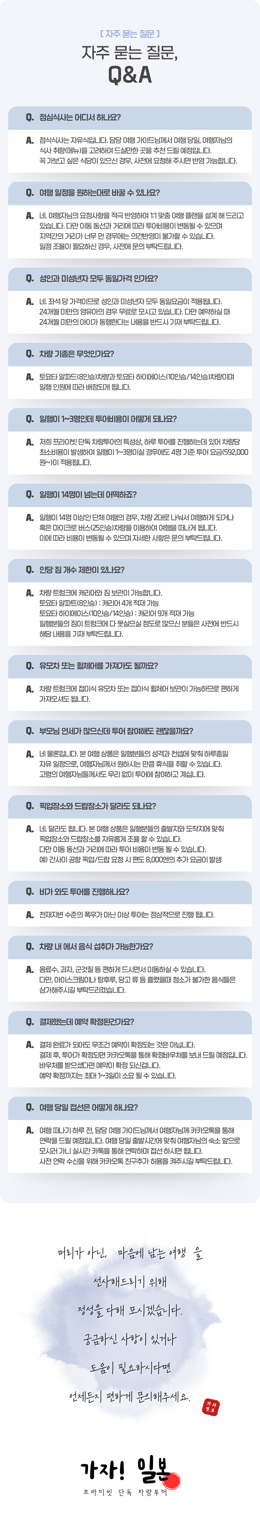 * 픽업 위치에 따라 미팅 시간이 다르므로, 예약 확정 후 정확한 시간을 안내해 드립니다.
