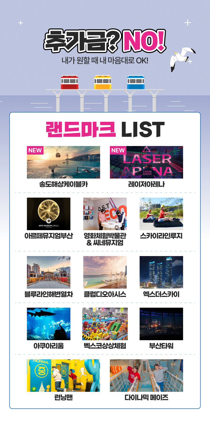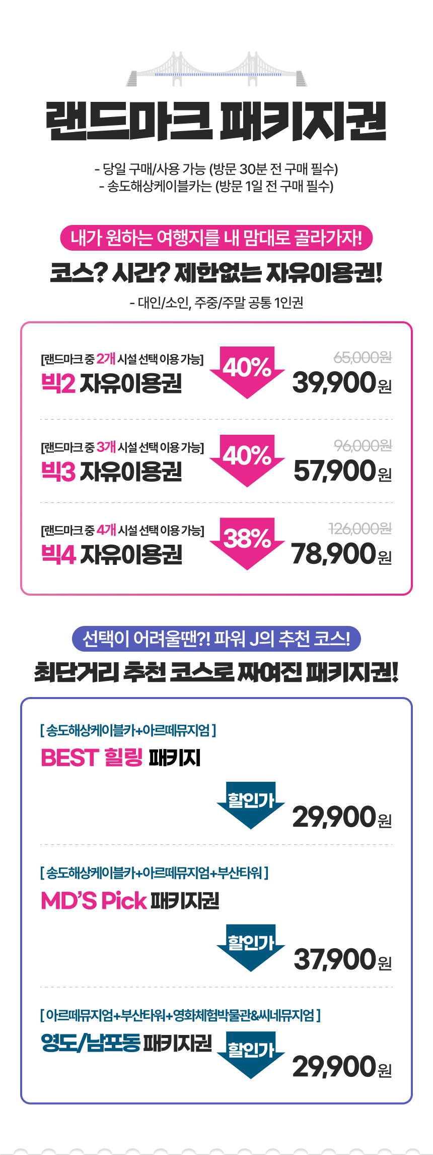 🚌부산의 대표 관광지를 내 일정에 맞춰 자유롭게 이용할 수 있는 부산 랜드마크 패키지예요.
