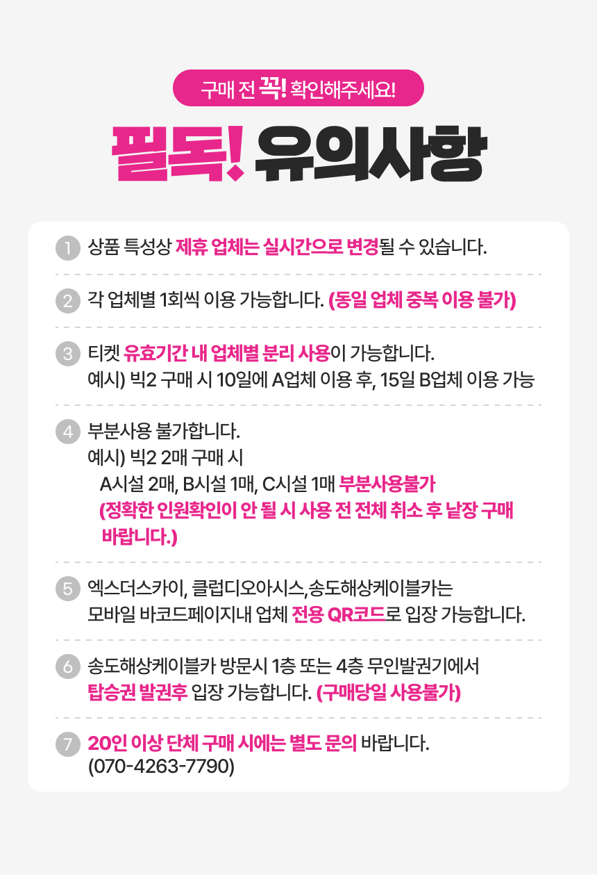 업체별 운영 시간과 운영 정보를 꼭 확인해 주시기 바랍니다.