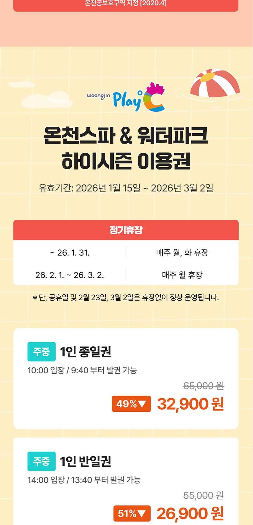 ※ 휴무일 : 1월 매주 월, 화 휴장 / 2월 : 2일, 9일 휴장 (이 외 정상 운영)