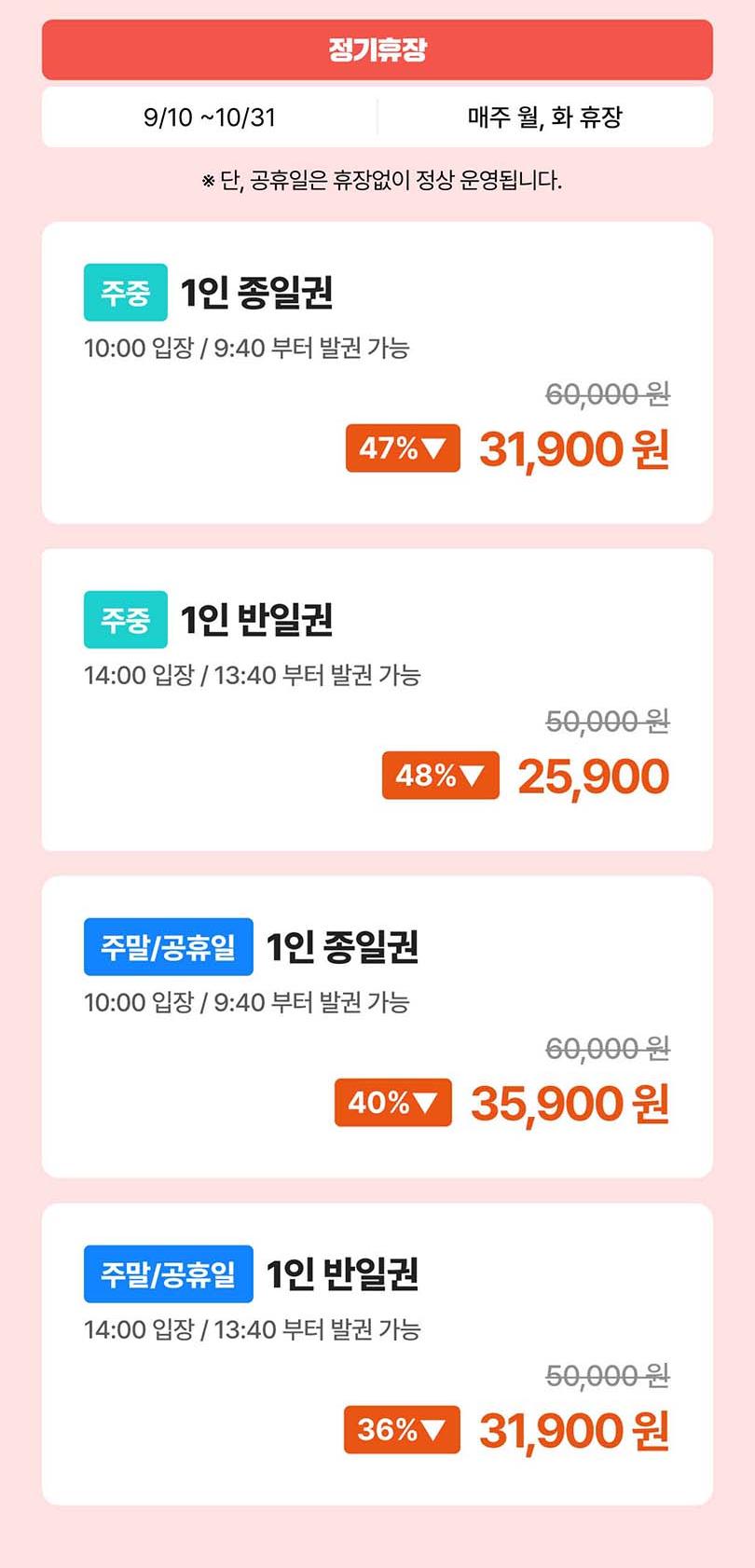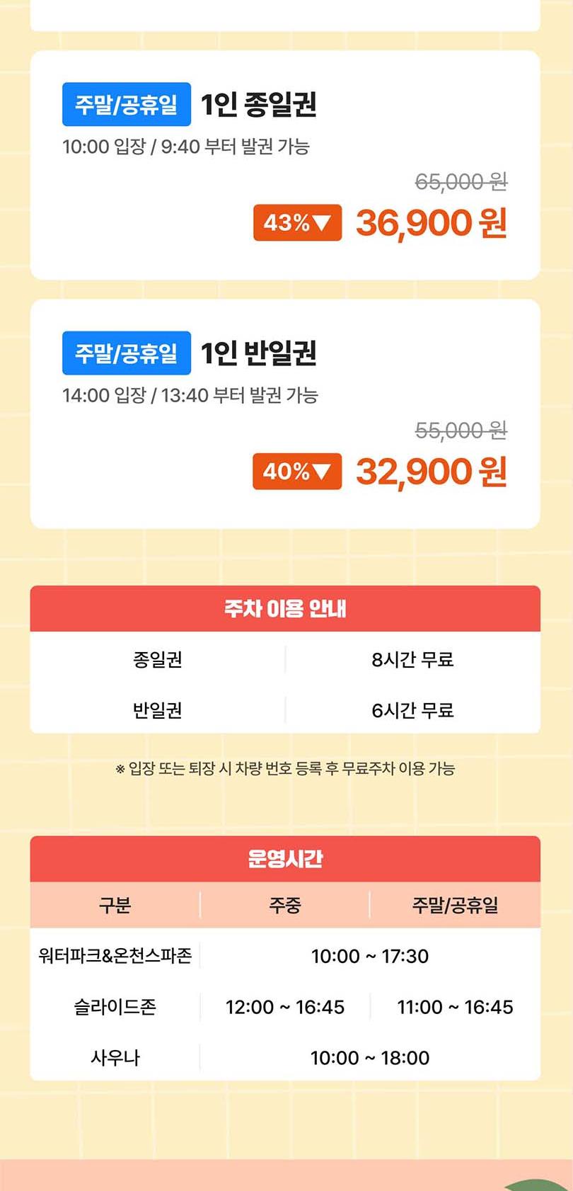 ※ 시설/요일별 운영 및 마감시간이 다릅니다. 상세페이지 필수 참고 부탁드립니다.