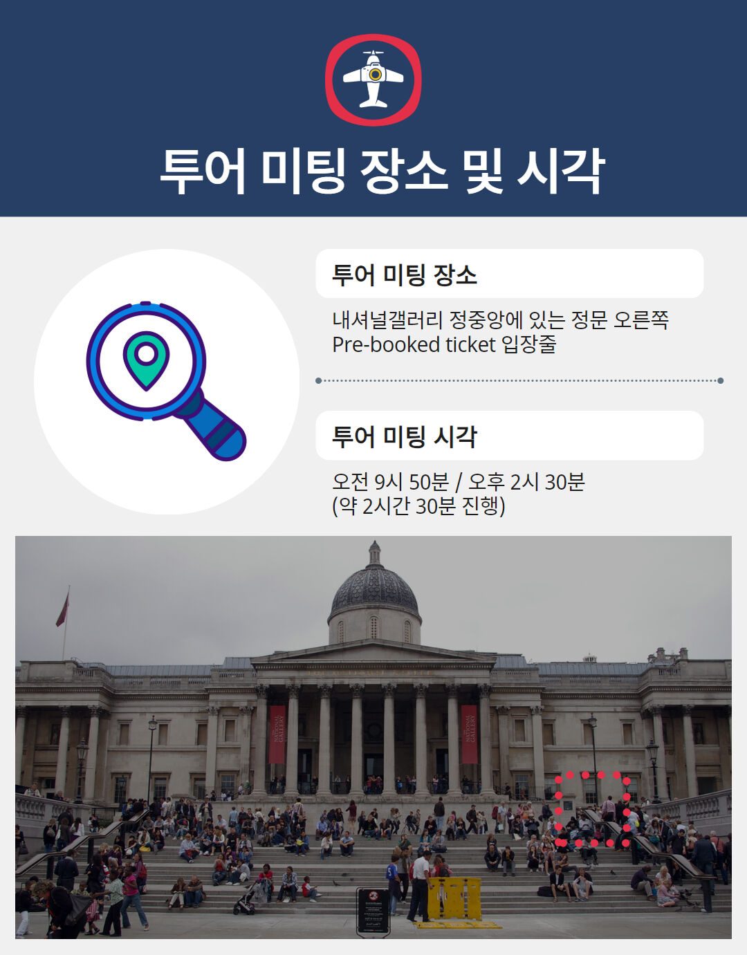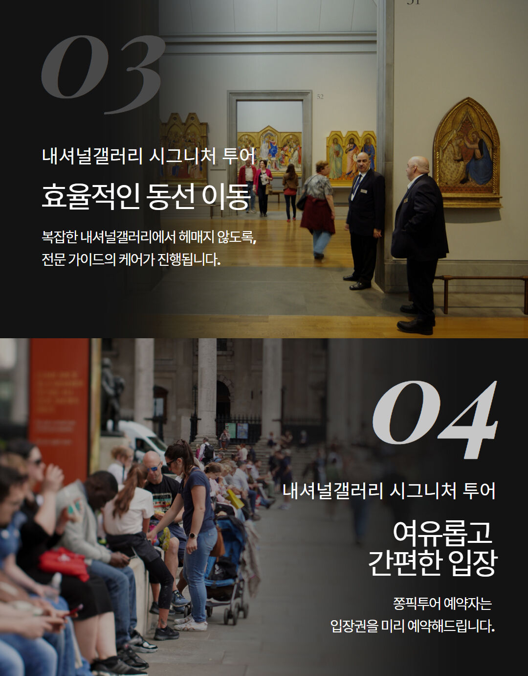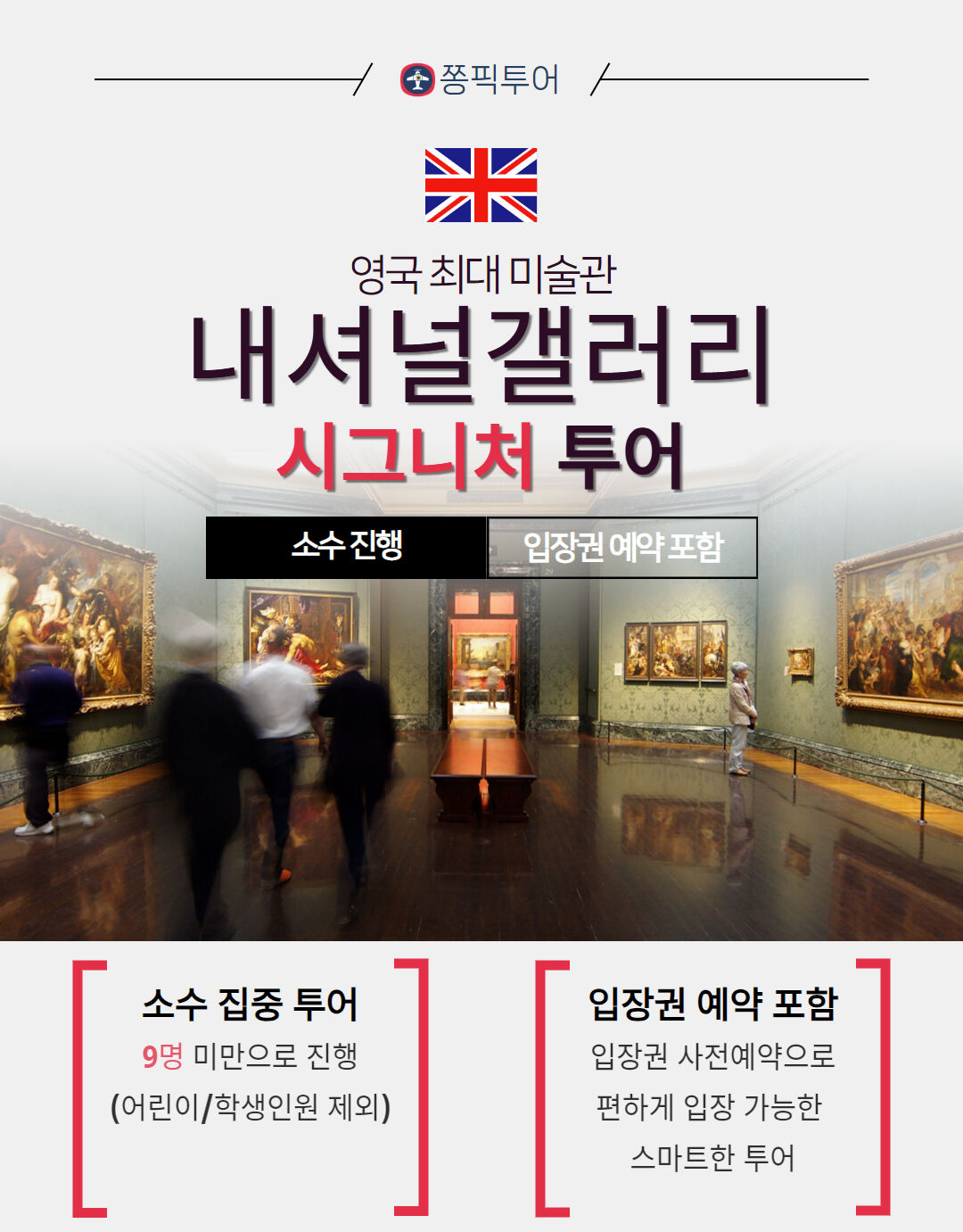 영국 런던에 위치한 내셔널갤러리는 세계에서 가장 유명한 미술관 중 하나로, 다양한 미술작품들을 만날 수 있는 곳이에요. 이번 시그니처 투어는 내셔널갤러리의 깊이 있는 역사와 작품들을 친절한 가이드와 함께 탐방할 수 있는 기회를 제공해요. 미술의 전문가가 아니더라도, 투어를 통해 그림 하나하나에 담긴 이야기와 역사적 배경을 쉽게 이해할 수 있어요. 사전 입장권 예약 서비스로 길게 줄을 서서 기다릴 필요 없이 미술관을 효율적으로 둘러보세요!