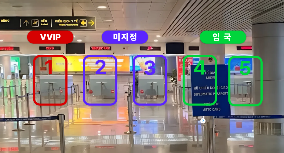 1) VVIP 패스트트랙 (최우선): 1번 라인 이용, 크루라인으로 최우선 통과합니다.
