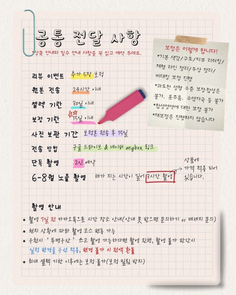 ※ 원본 전달 후 30일 이후 셀렉은 보정 불가