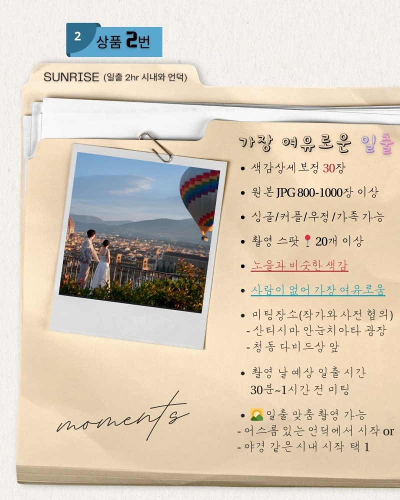 베스트피렌체에서의 일출 스냅 촬영은 정말 특별한 경험이었습니다!! 작가님님께서 자연스러운 포즈와 동선을 잘 이끌어주셔서 어색하지 않게 즐겁게 촬영할 수 있었고, 덕분에 피렌체의 낭만을 제대로 느낄 수 있었습니다. 피렌체에서 스냅 촬영을 고민하신다면, 특히 일출 타임을 강력 추천드립니다. 붐비지 않는 시간대라 넘 좋았어요!