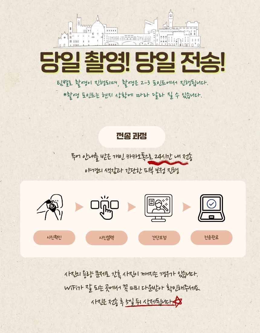 ✨ 스냅사진도 찍Go : 피렌체에서 오직 저희만이 핸드폰 사진이 아닌 ""전문가용"" 카메라를 이용한 인생 사진을 남겨드립니다.