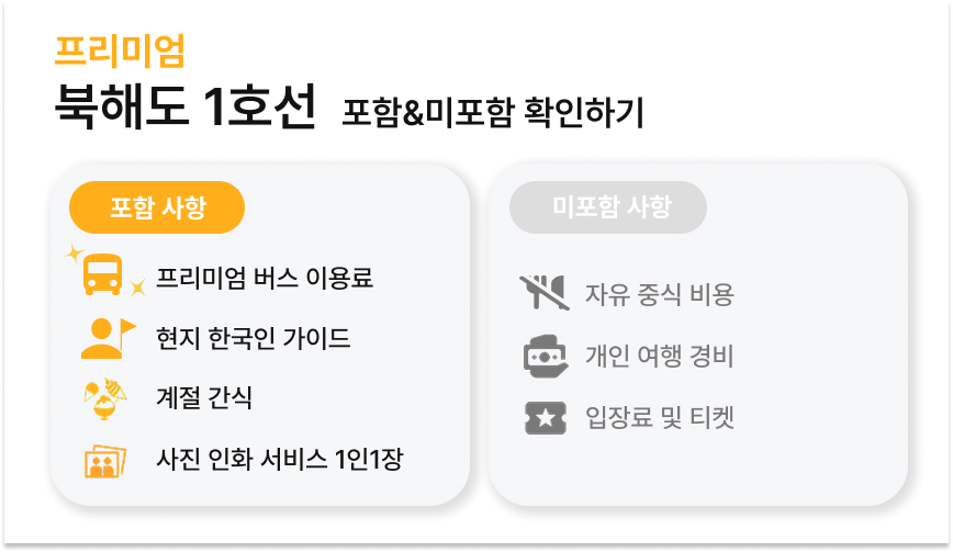 투어 참여자들을 위한 특전도 프리미엄하게 준비되어 있어요. 사진 인화 서비스(1인 1장)와 계절 간식(1인 1개)을 제공해 드리니 사진과 간식, 그리고 고급스러운 VIP 프라이빗 리무진 버스까지 더해진 투어로 더욱 특별한 여행을 즐겨보세요!