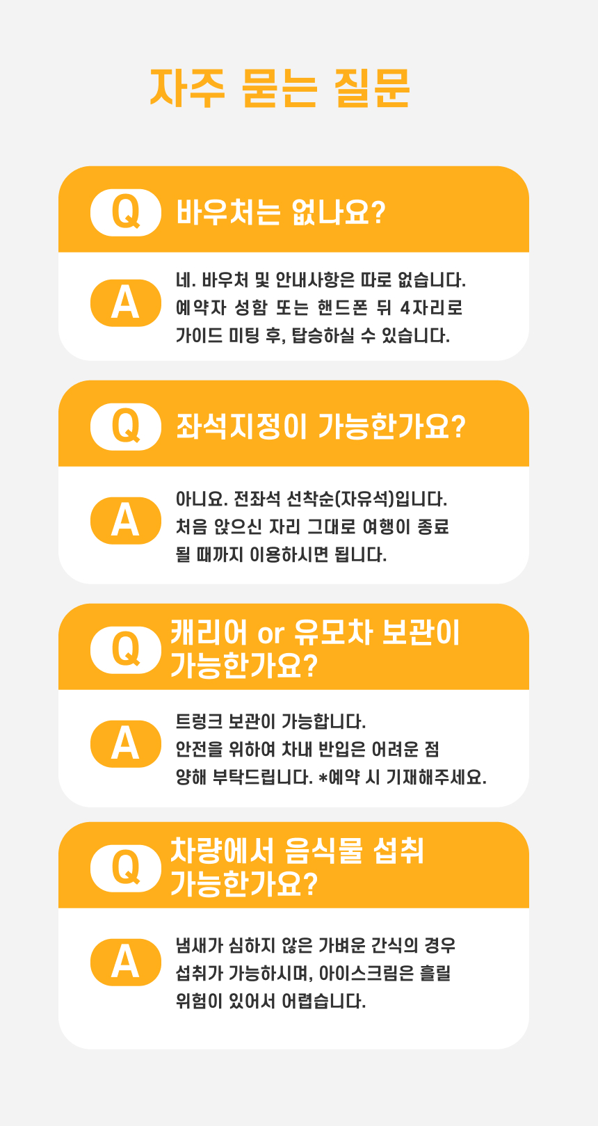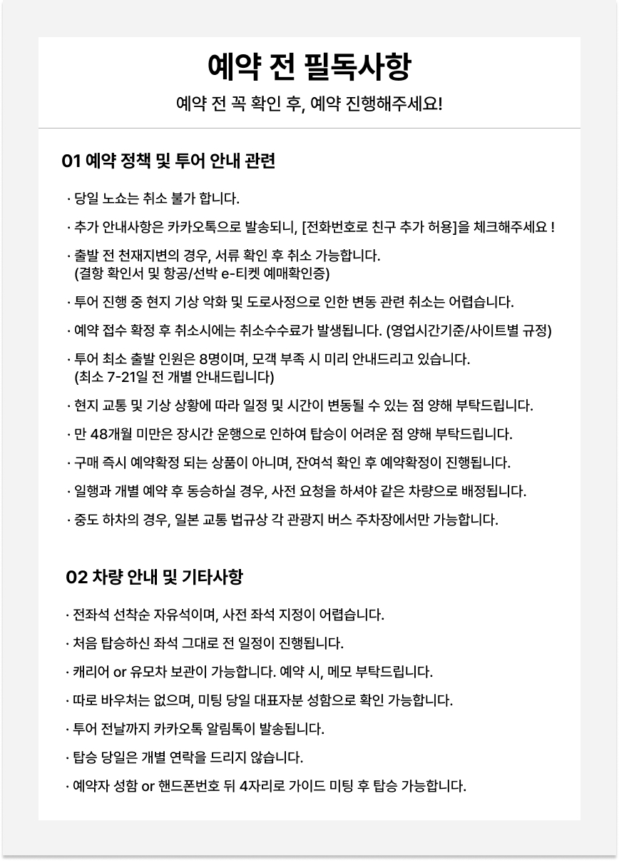 * 당일 미팅 시간에 늦으시는 경우 노쇼로 간주되는 점 양해 부탁드립니다.