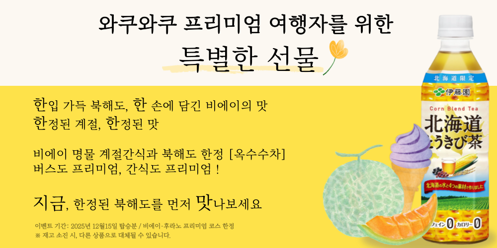 와쿠와쿠 프리미엄 프라이빗 리무진 버스로 떠나는 북해도 1호선 투어를 소개드립니다. 편안하고 여유로운 여행을 위해 특별히 준비한 29인승 리무진 버스와 우리만의 소중한 시간을 보낼 수 있는 29인승 프라이빗 버스에서 매력 넘치는 한국인 가이드와 함께 북해도의 사계절을 만끽해보세요! 가슴이 뻥 뚫리는 푸른 자연경관과 미술관 같은 풍경을 동시에 즐길 수 있는 곳, 북해도 여행을 떠나고 싶다면 해당 투어를 추천해 드려요.