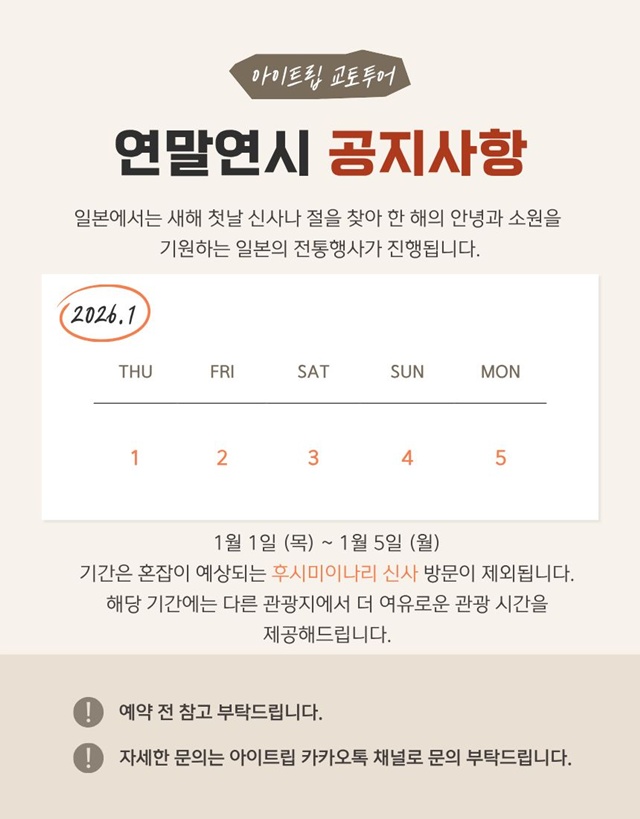 * 버스는 정각에 출발하니 늦지 않도록 주의해 주시기 바랍니다.