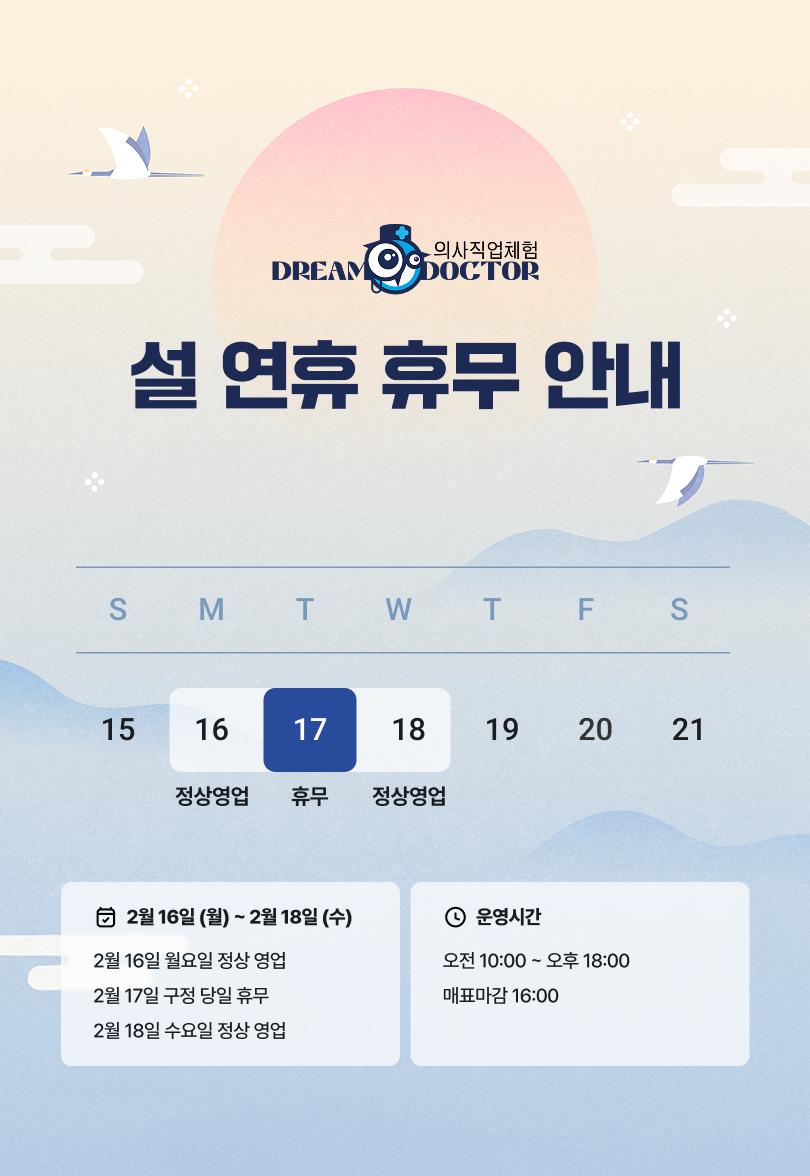 ※ 구정 연휴 : 2/16,18 정상운영, 2/17 휴무