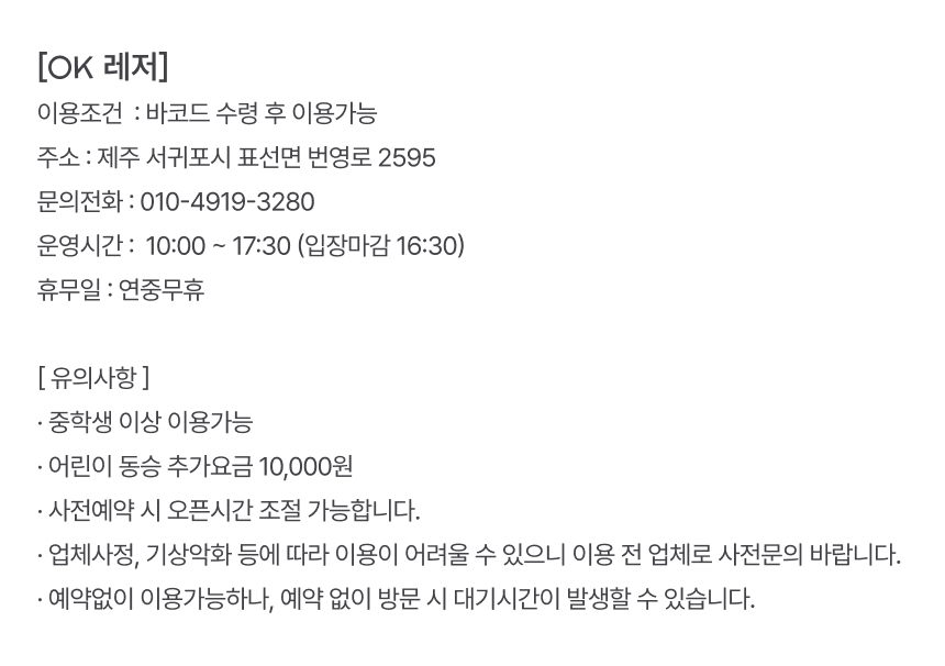 * 업체사정, 기상악화 등에 따라 이용이 어려울 수 있으니 이용 전 업체로 사전문의 바랍니다. (010-4919-3280)