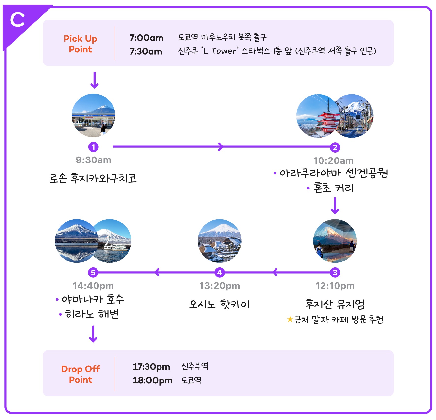 한국어 제공,영어 제공,중국어 제공🙌 도쿄에서 후지산 보러 가기 어렵지 않아요. 케이투어스토리의 버스투어로 편하게 후지산을 만나보세요! 🔥소인 단독 구매는 불가합니다.