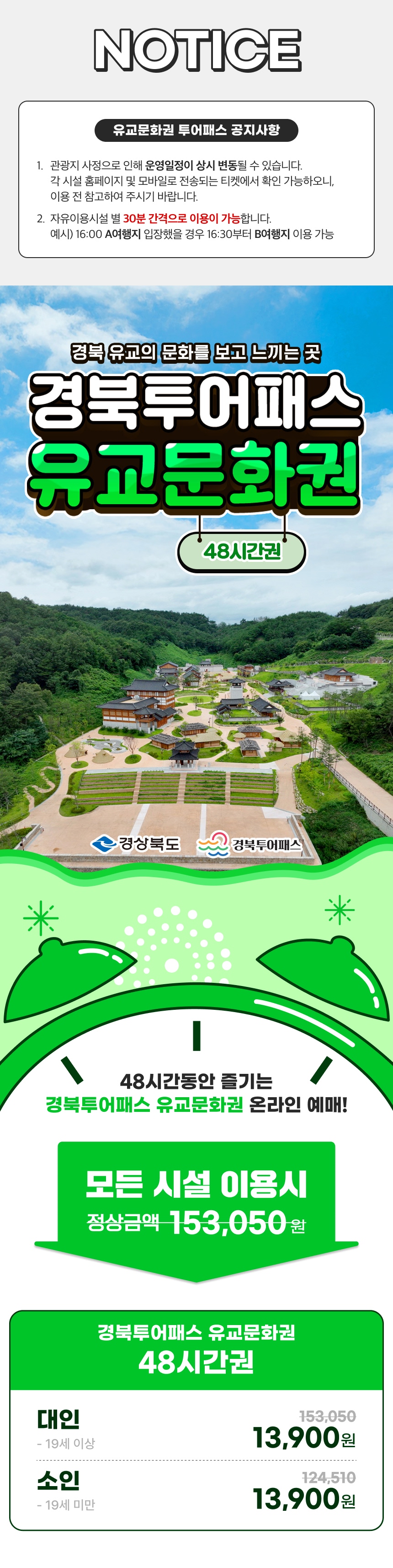 하나의 패스만 있으면 유교문화권의 주요 명소들을 자유롭게 방문할 수 있어, 번거로움 없이 알찬 여행을 계획할 수 있어요. 유네스코 세계유산으로 등재된 하회마을, 도산서원 등 유구한 역사와 아름다운 자연이 어우러진 고택과 서원들을 둘러보세요. 고요한 분위기 속에서 전통 문화를 체험하고, 자연 속에서 사색에 잠기는 시간을 가질 수 있어요. 경북투어패스 '유교문화권'과 함께 한국 정신문화의 깊이를 탐험하며 잊지 못할 평화로운 추억을 만들어 보세요!