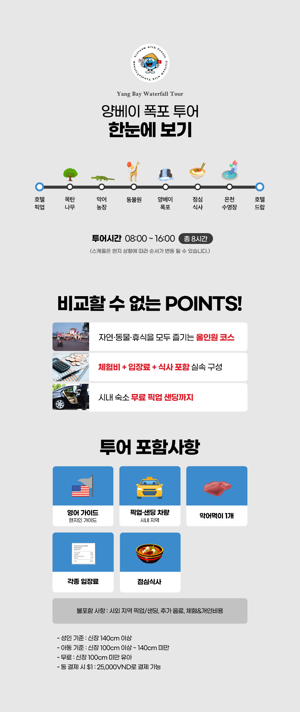 가족과 아이들 모두가 신나게 즐길 수 있는 특별한 투어를 소개해요. 악어에게 먹이를 주는 짜릿한 체험부터, 시원한 양베이 폭포 아래 펼쳐지는 멋진 전통 공연, 그리고 피로가 싹 풀리는 자연 온천 수영장까지! 모두가 나트랑에서 행복한 추억을 만들 수 있는 완벽한 코스가 준비되어 있답니다.